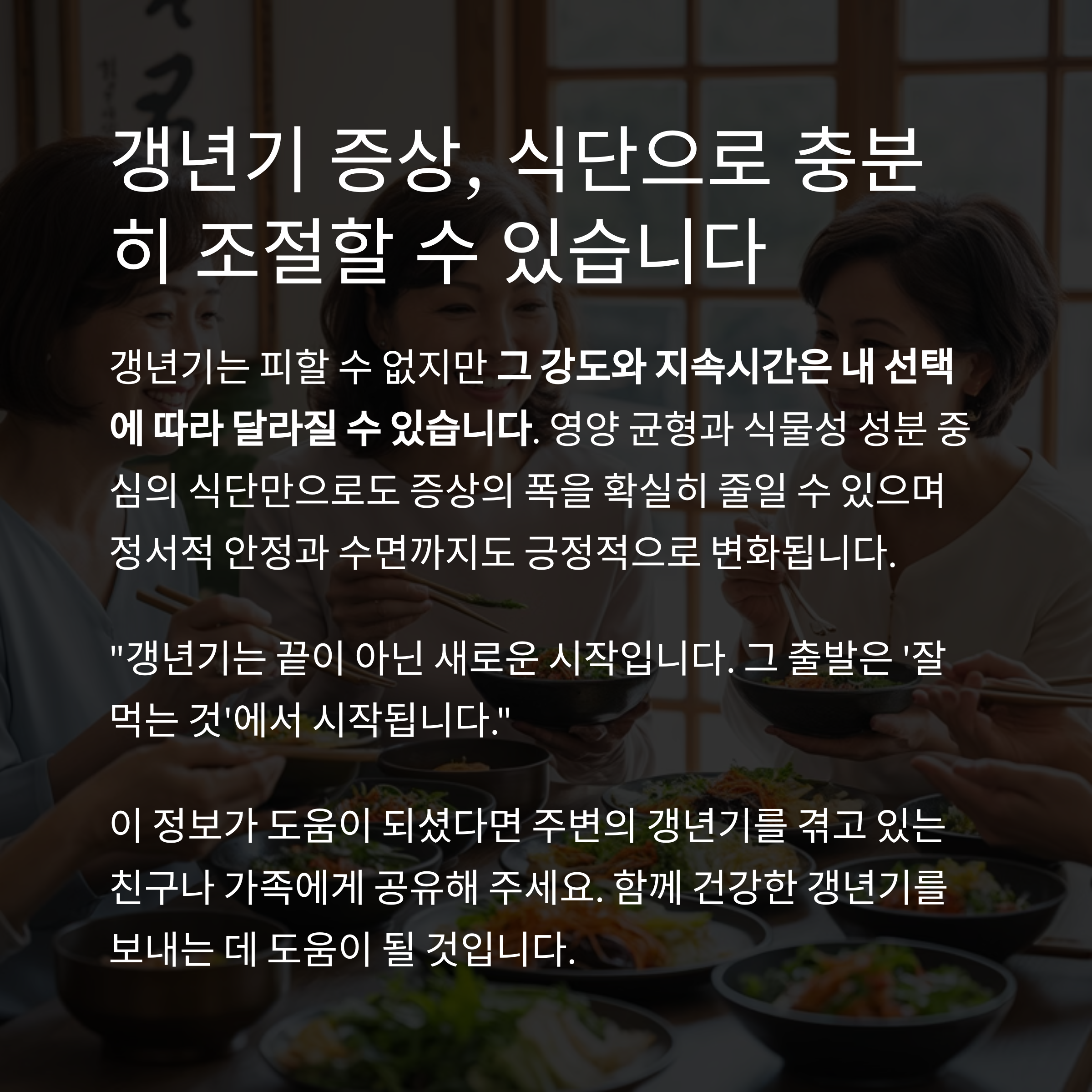 핵심 정리: 갱년기 증상, 식단으로 충분히 조절할 수 있다