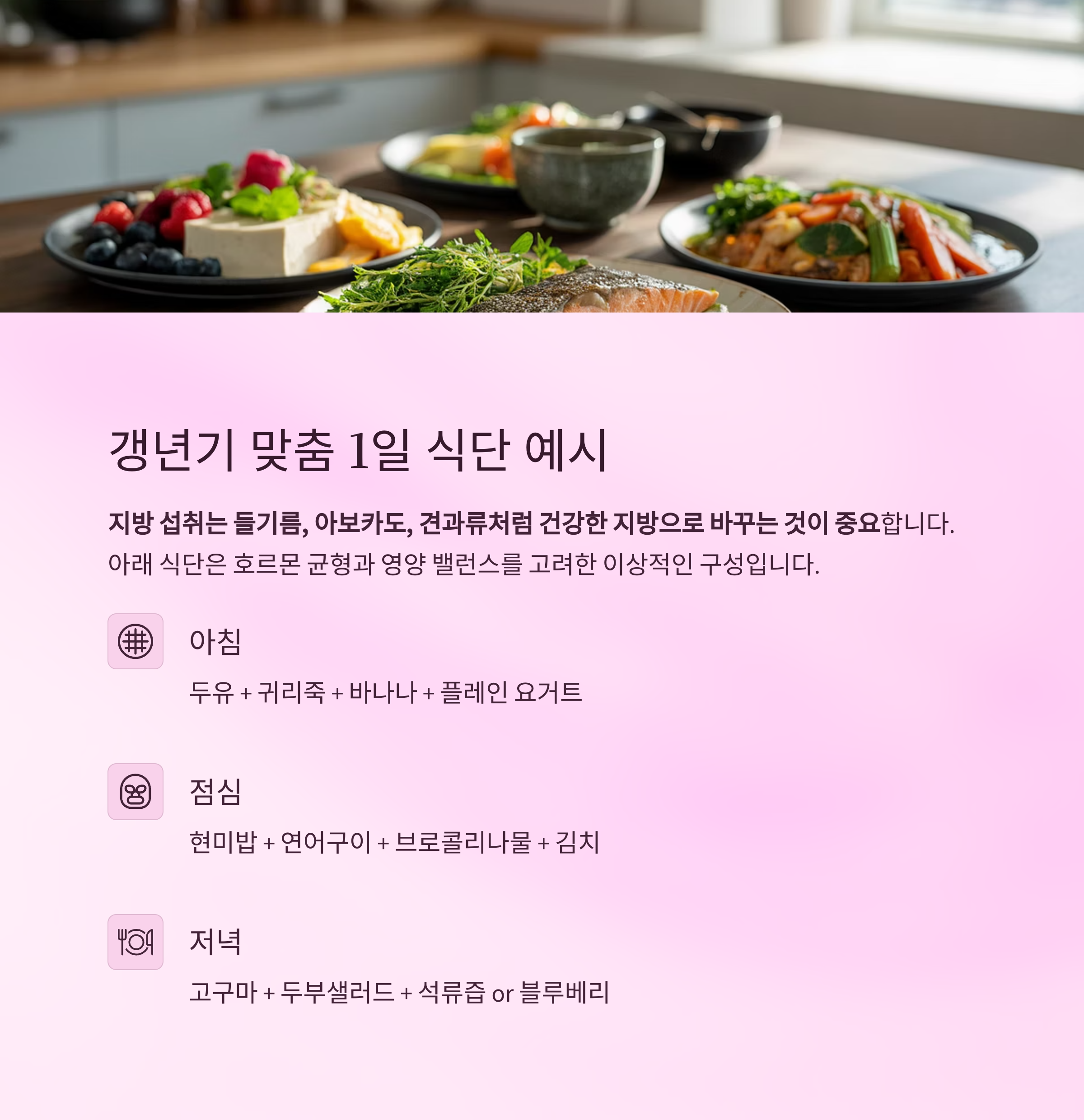 갱년기 증상 조절을 위한 식단 구성과 실천 루틴을 소개