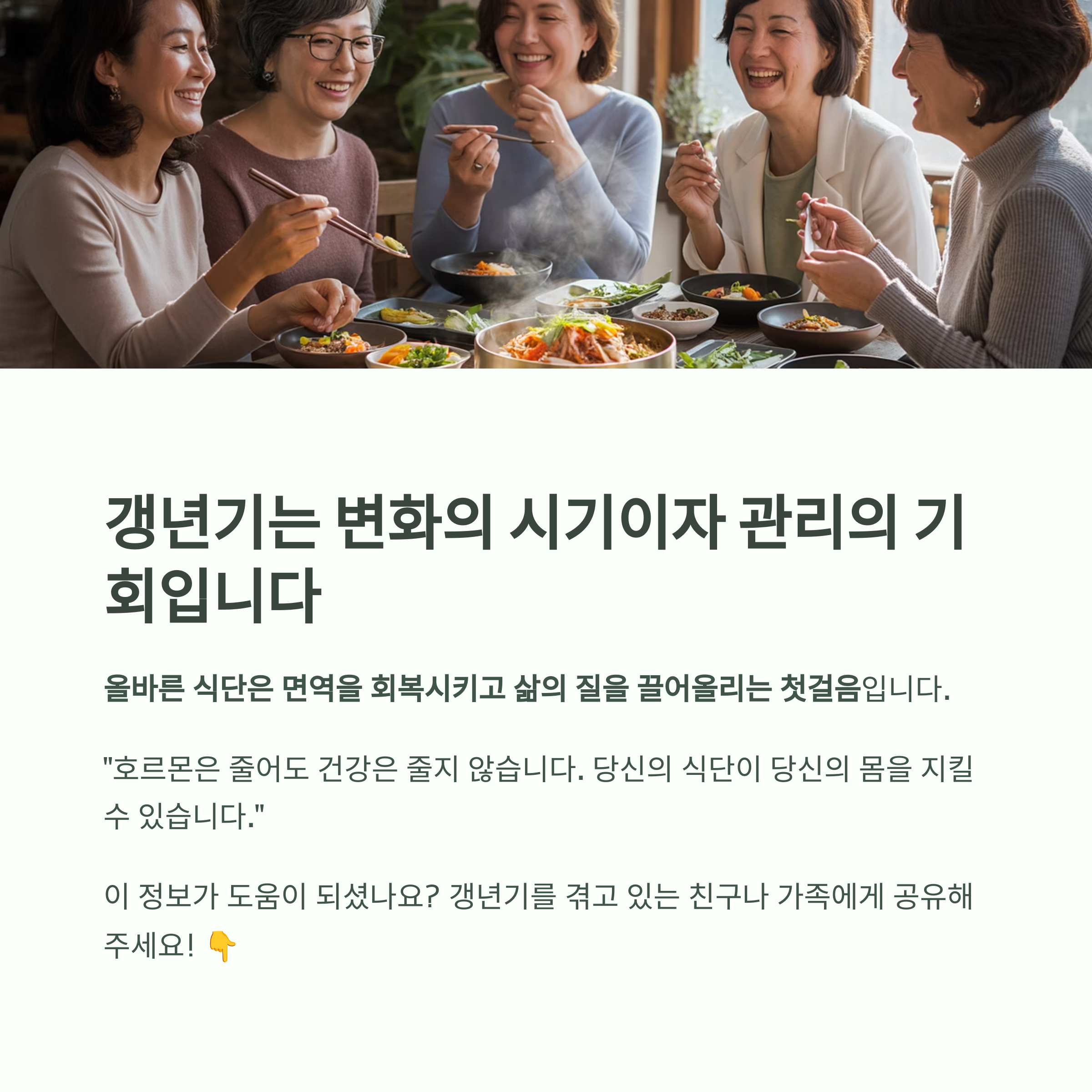 갱년기는 변화의 시기이자 관리의 기회입니다