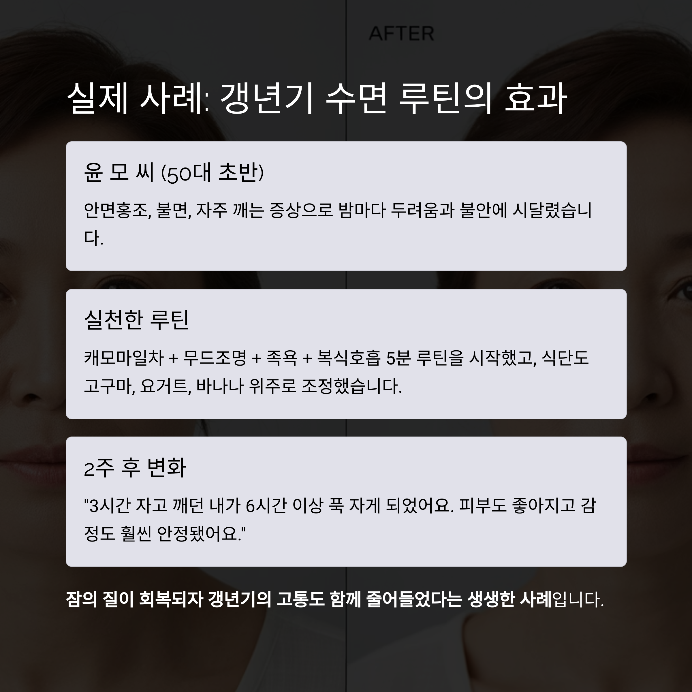 잠의 질이 회복되자 갱년기의 고통도 함께 줄어들었다는 생생한 사례입니다