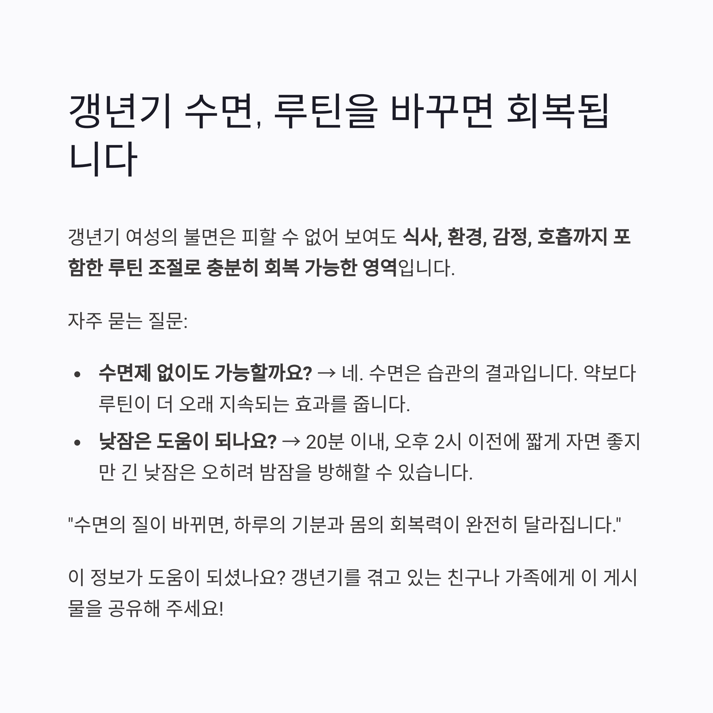 Q&A: 갱년기 수면 루틴에 대한 궁금증