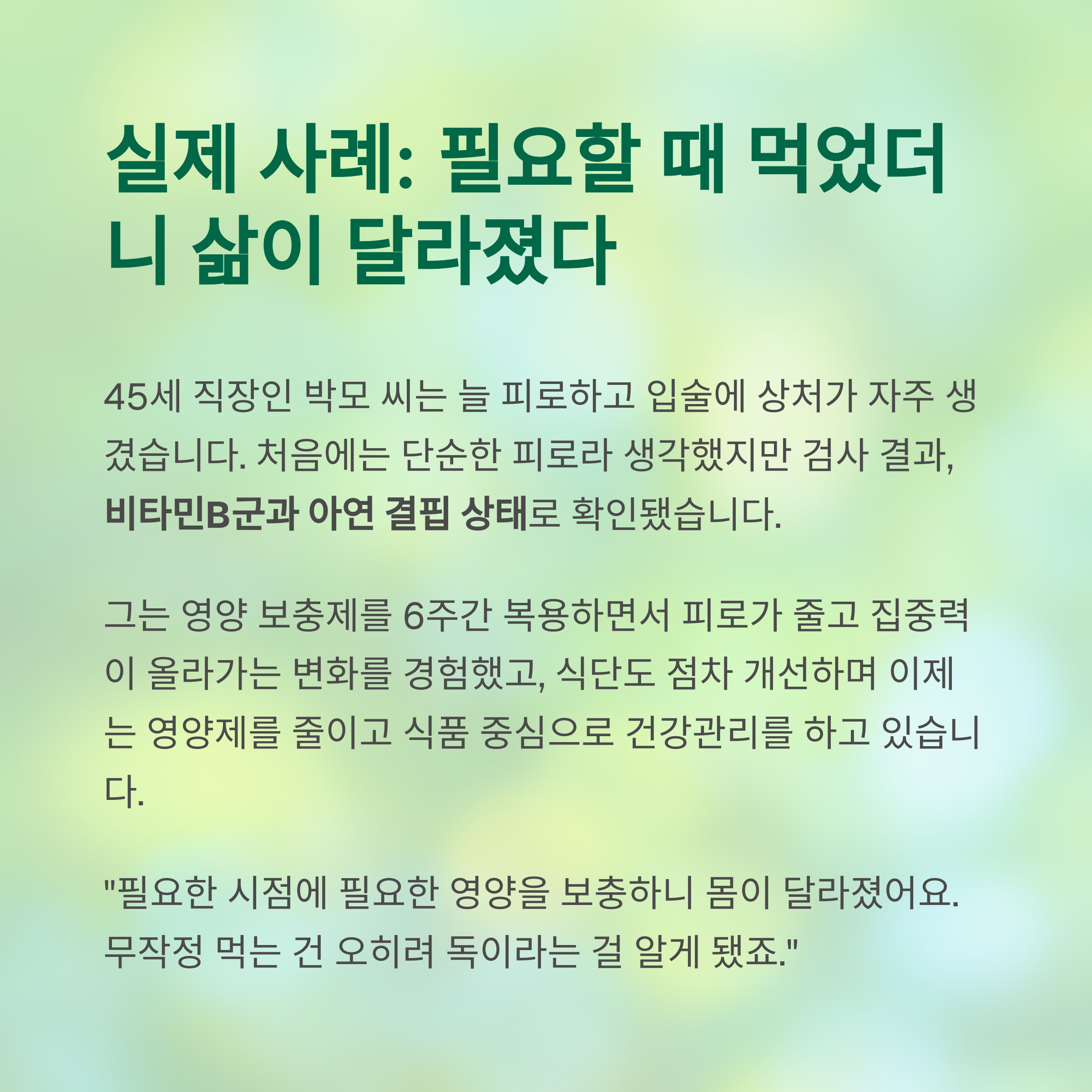 사례 스토리: "필요할 때 먹었더니 삶이 달라졌다"