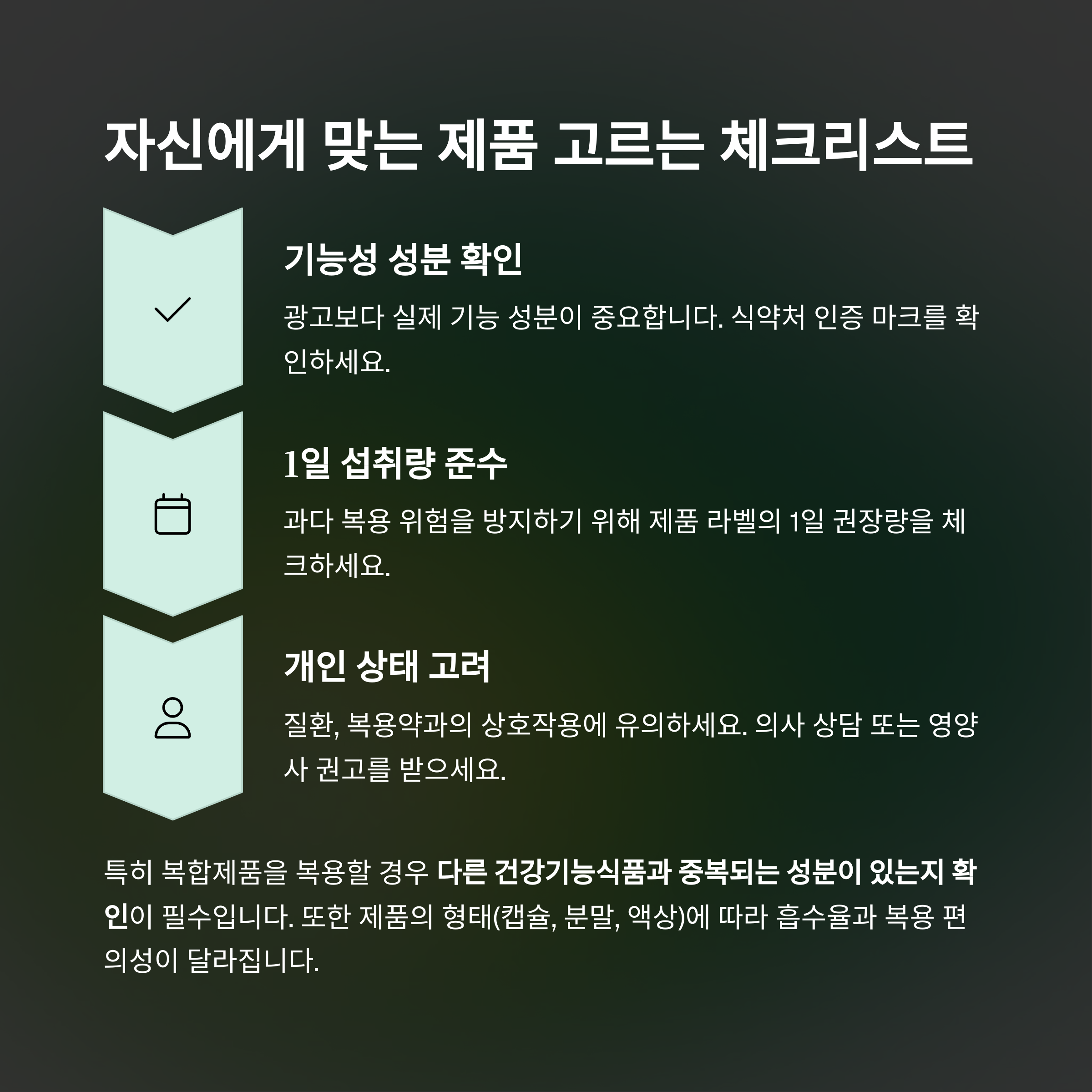 핵심 정리: 건강기능식품은 ‘상비약’이 아닌 ‘맞춤형 도구’입니다
