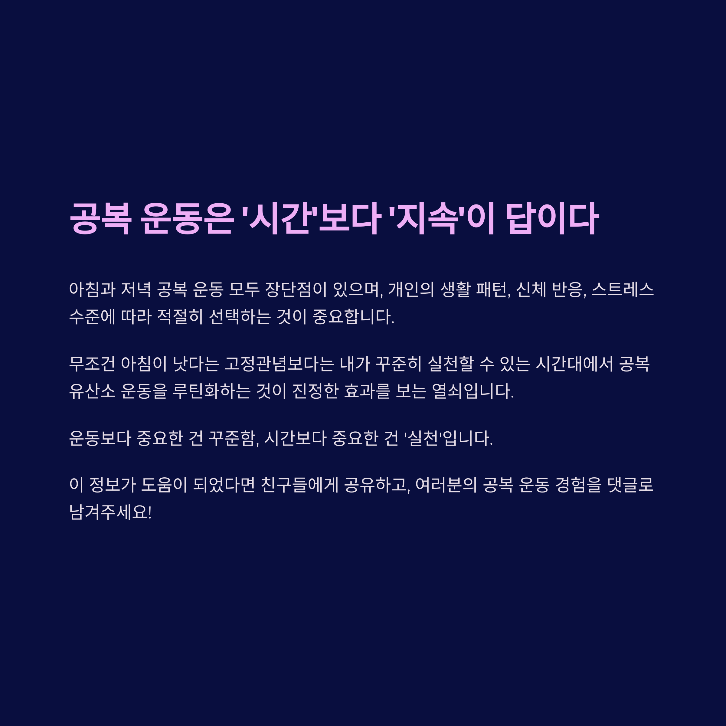 결론 : 공복 운동은 ‘시간’보다 ‘지속’이 답이다