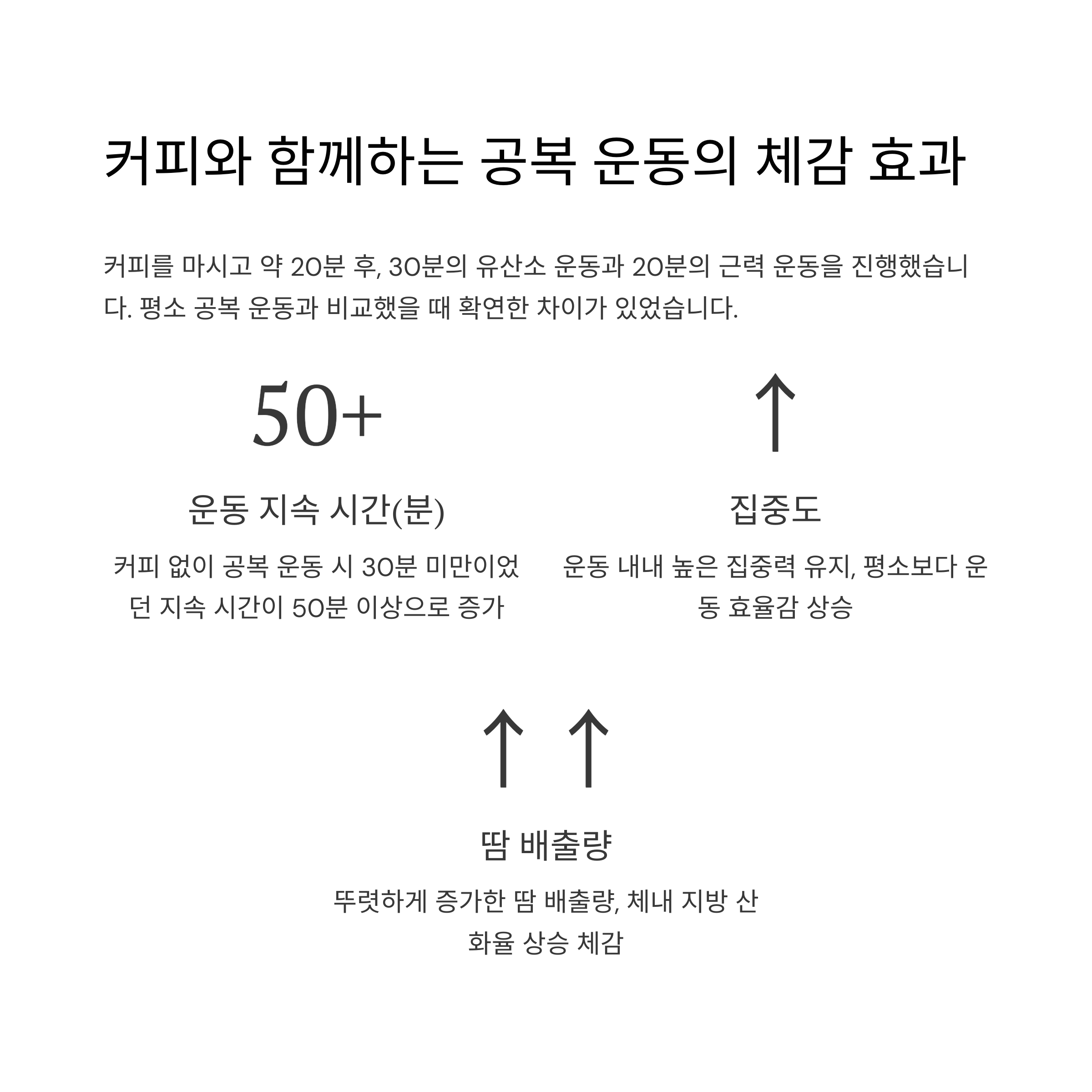 아래는 공복운동 시 커피 섭취 여부에 따른 운동 체감 비교입니다.
