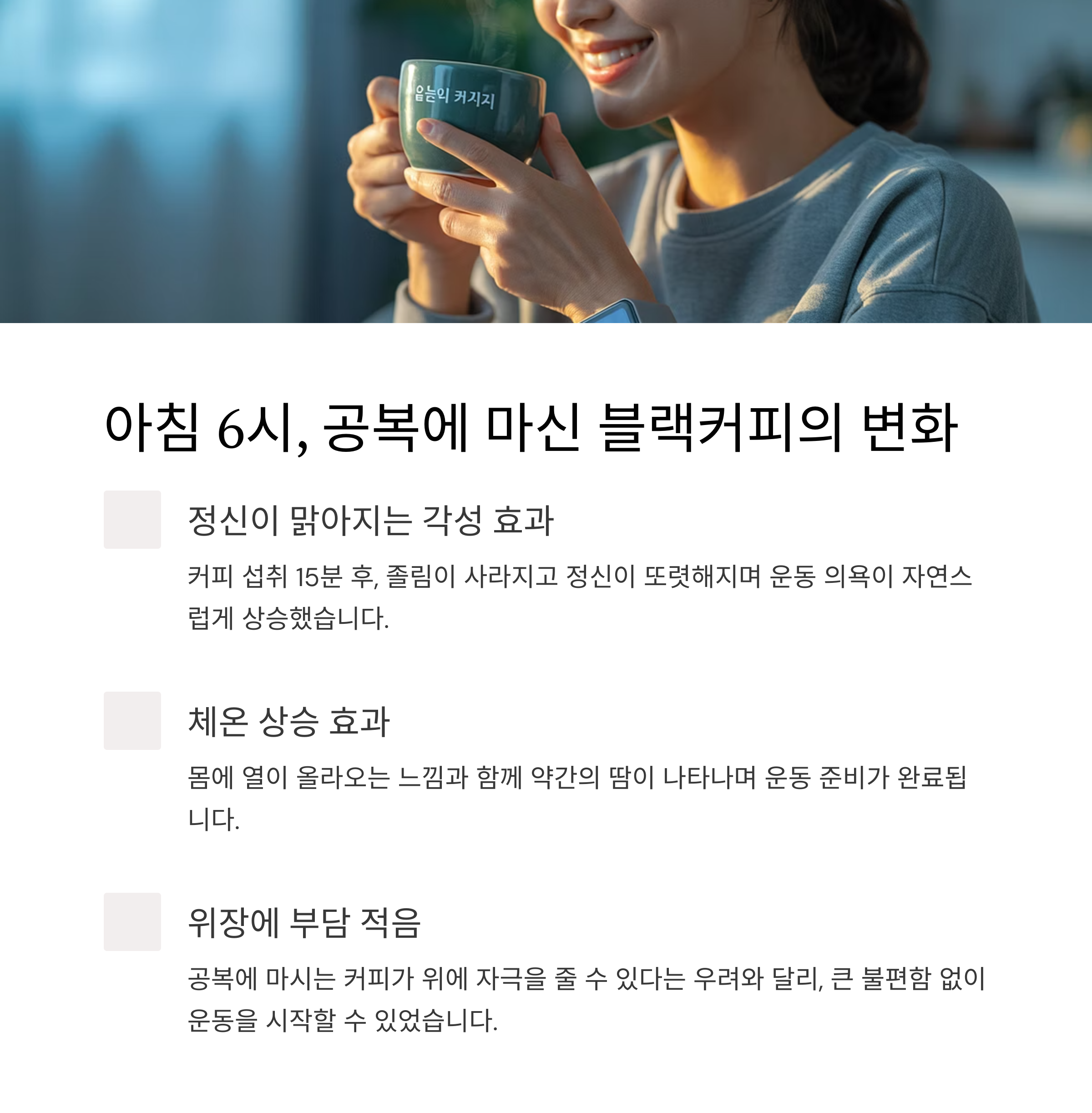 커피와 공복운동을 함께했을 때의 몸의 반응과 실천 후기