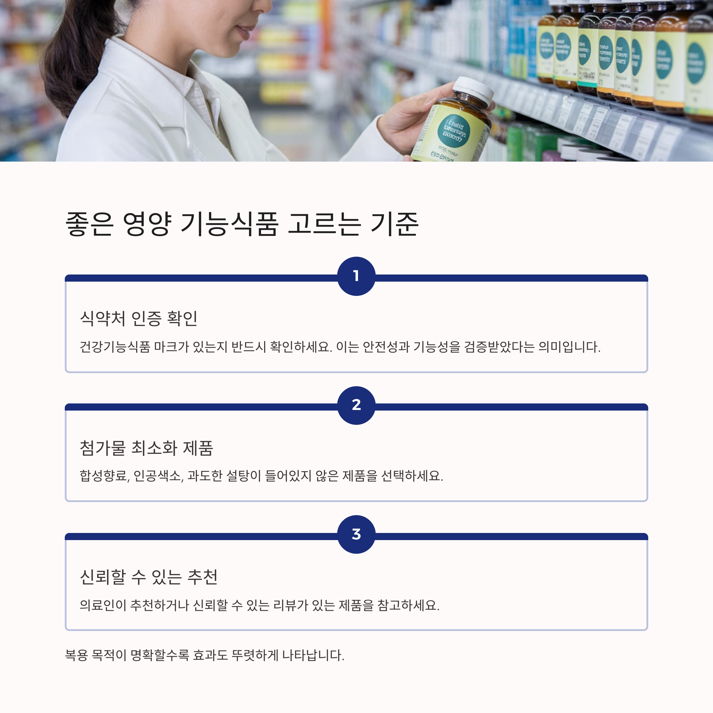 ▶ 실천 팁: 복합제보다는 목적별 단일 제품 위주 섭취 권장