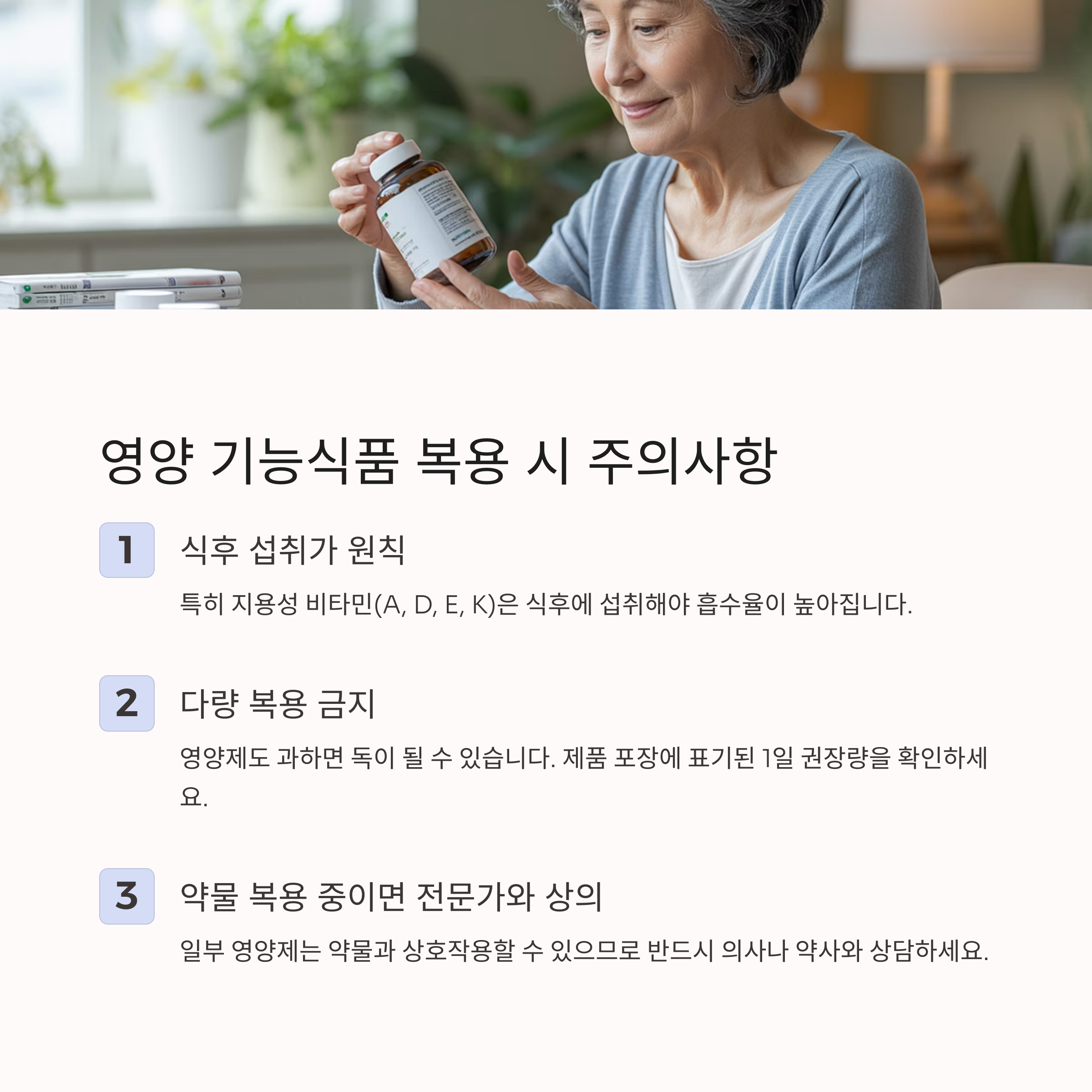 - 다량 복용 금지: 영양제도 과하면 독이 됨