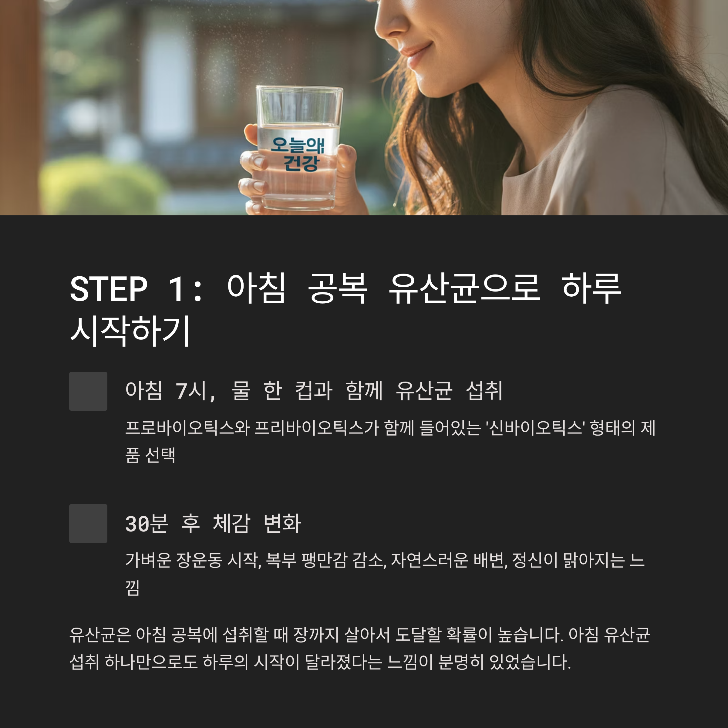 STEP 1. 아침 공복 유산균 섭취, 장을 깨우는 첫 루틴