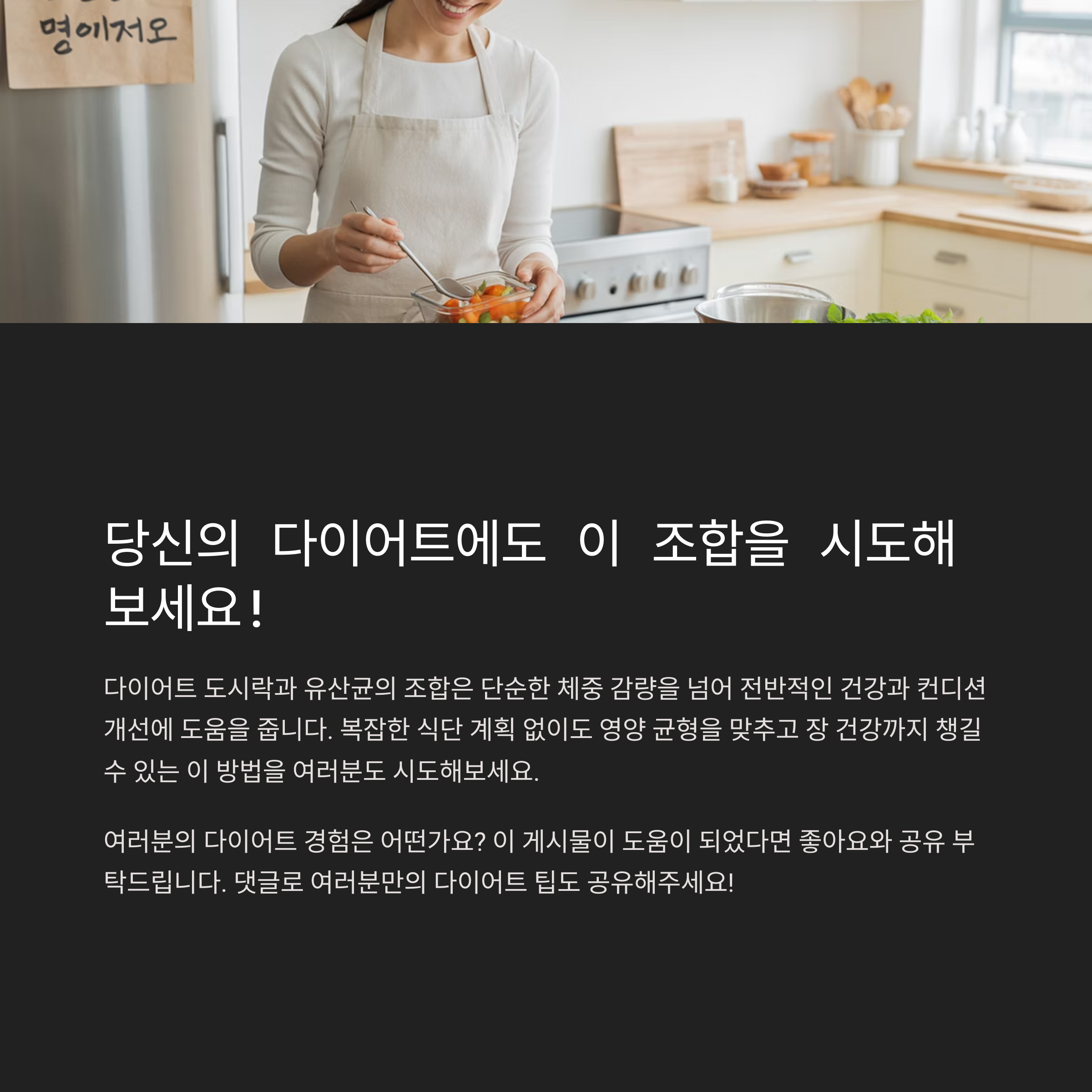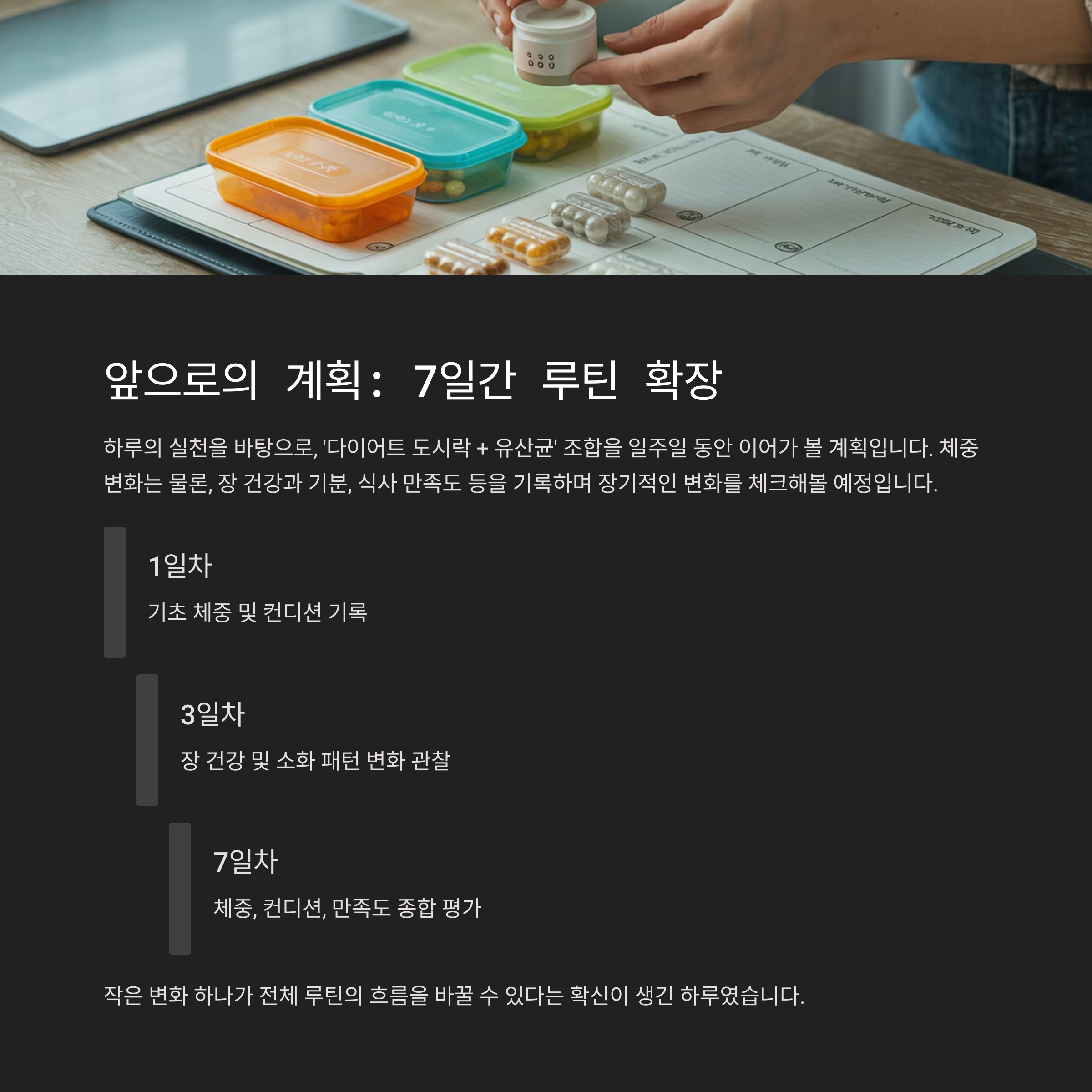 이번 글에서는 ‘다이어트 도시락 + 유산균’ 조합을 하루 동안 실천하며