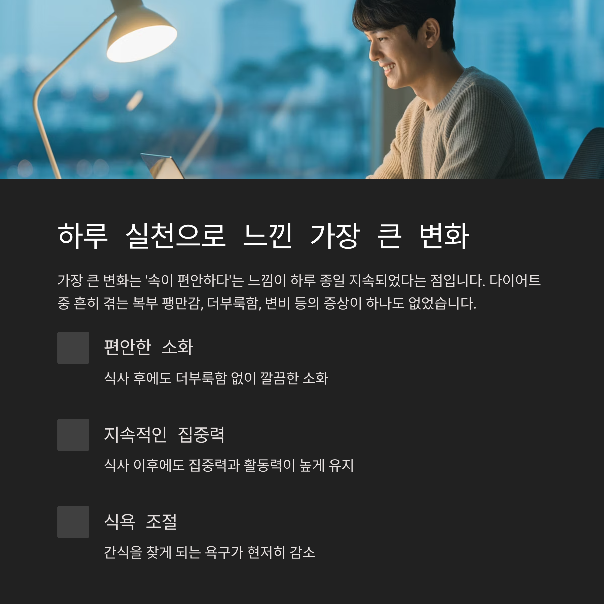 가장 큰 변화는 '속이 편안하다'는 느낌이