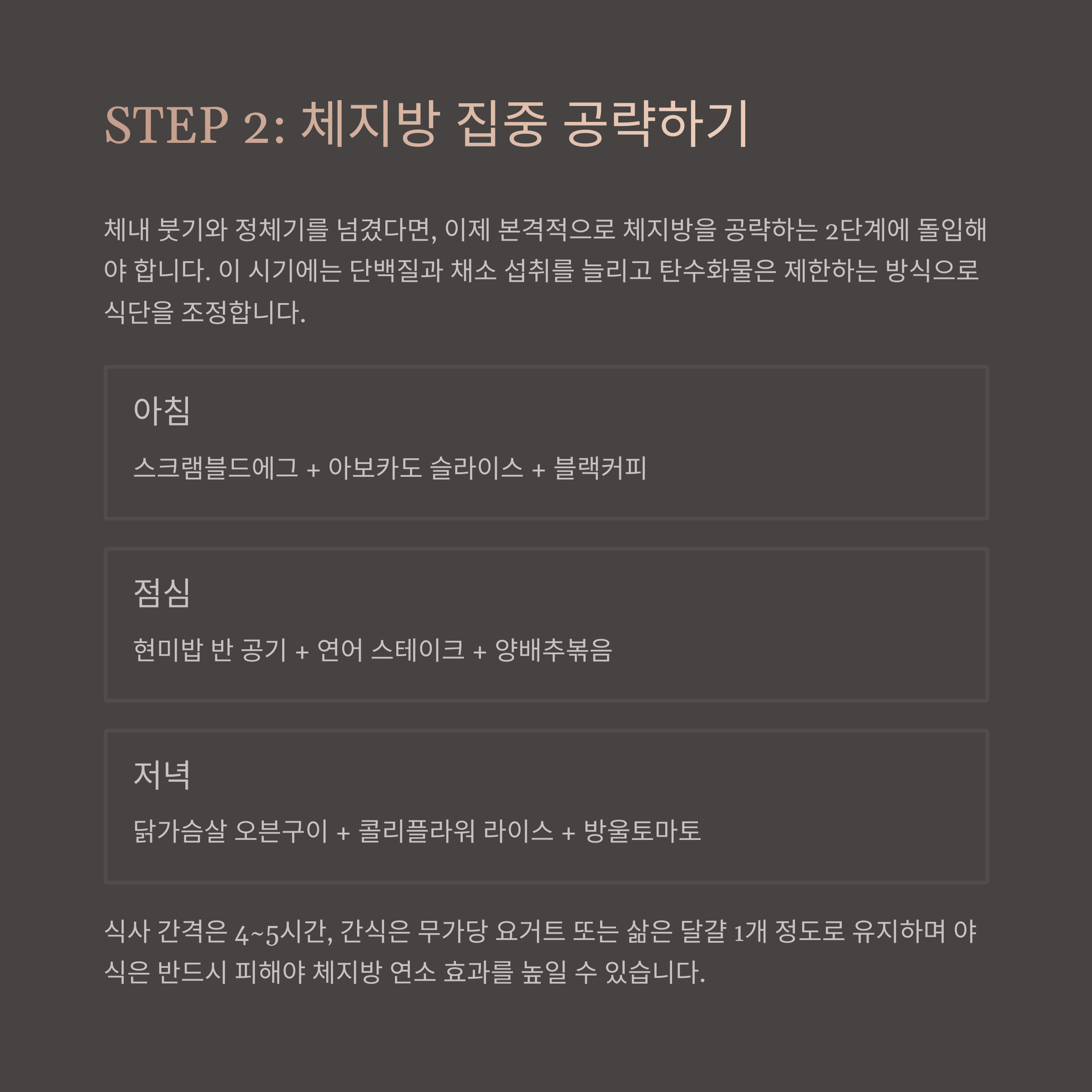 STEP 2. 체지방 집중 공략: 고단백·저탄수 식단 조정