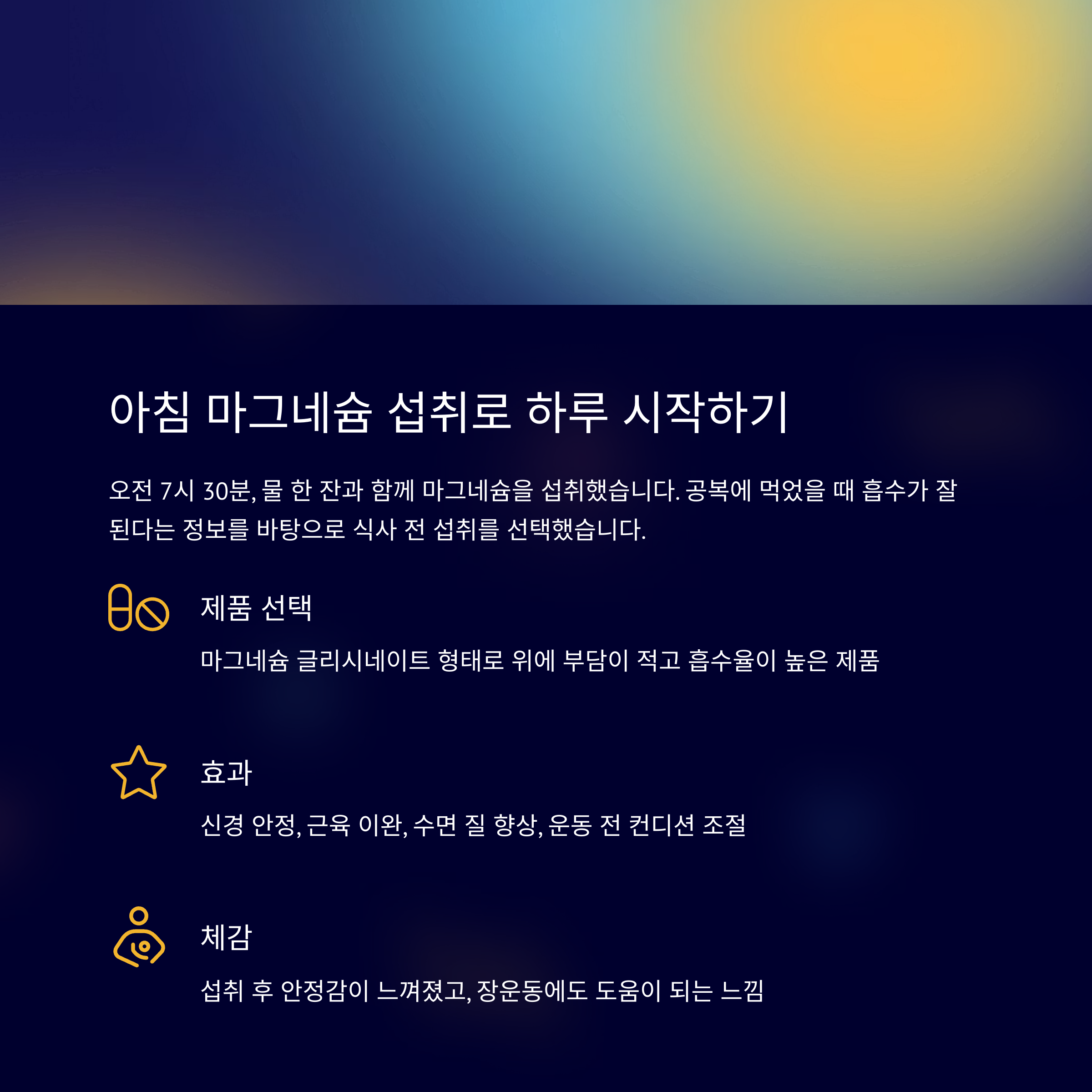 STEP 1. 아침 마그네슘 섭취, 하루 시작을 안정적으로