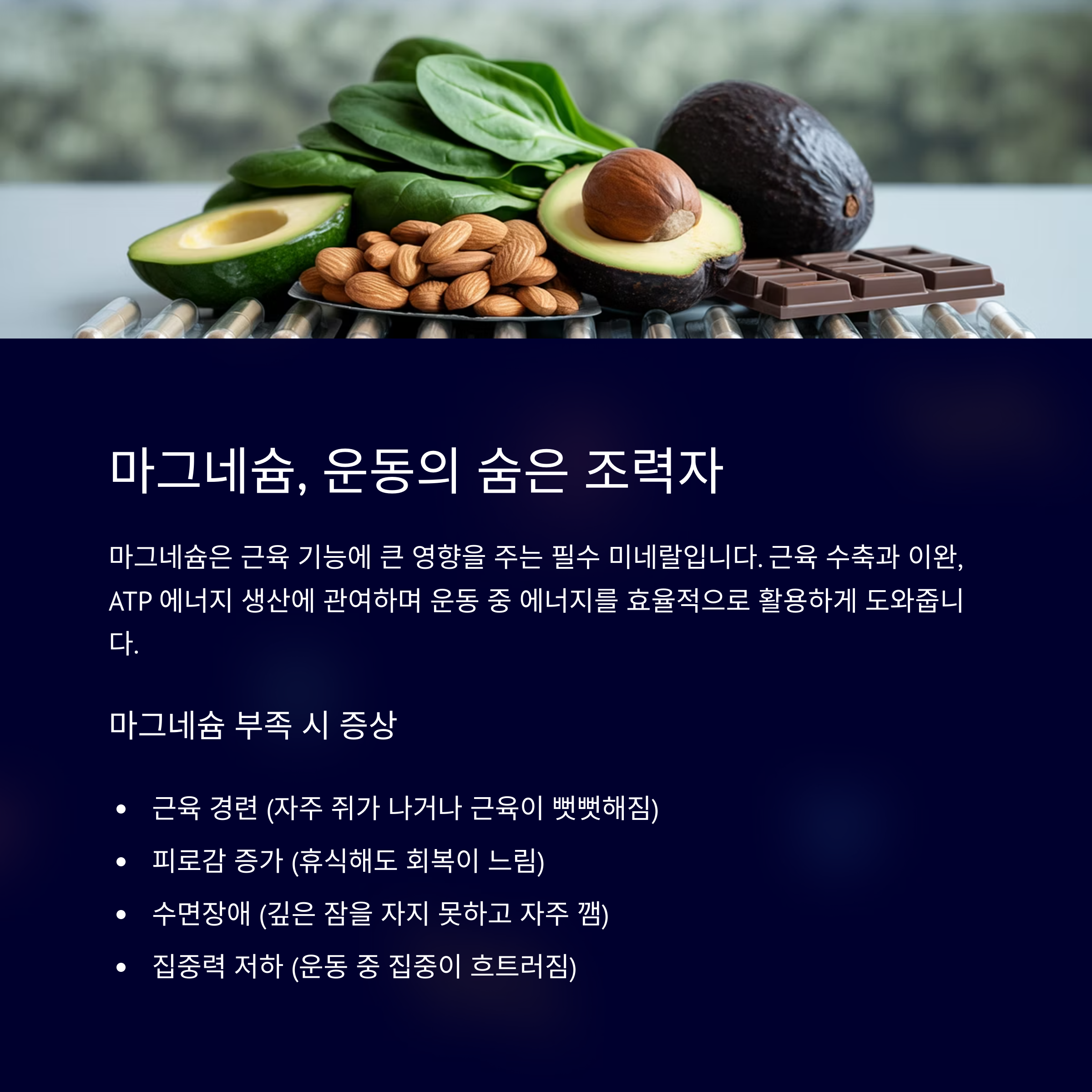 중요한 부분입니다. 특히 마그네슘은 근육 기능에 큰 영향을 주는