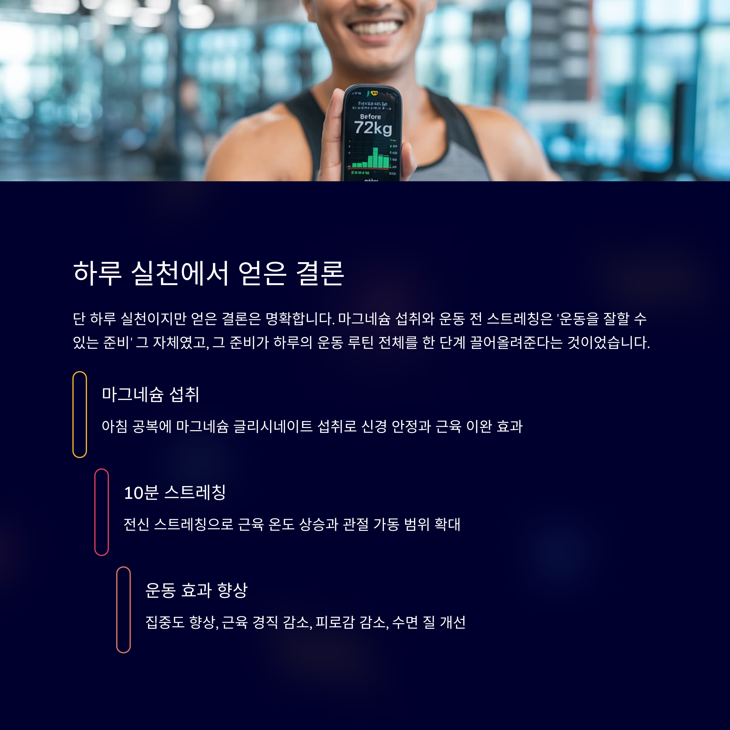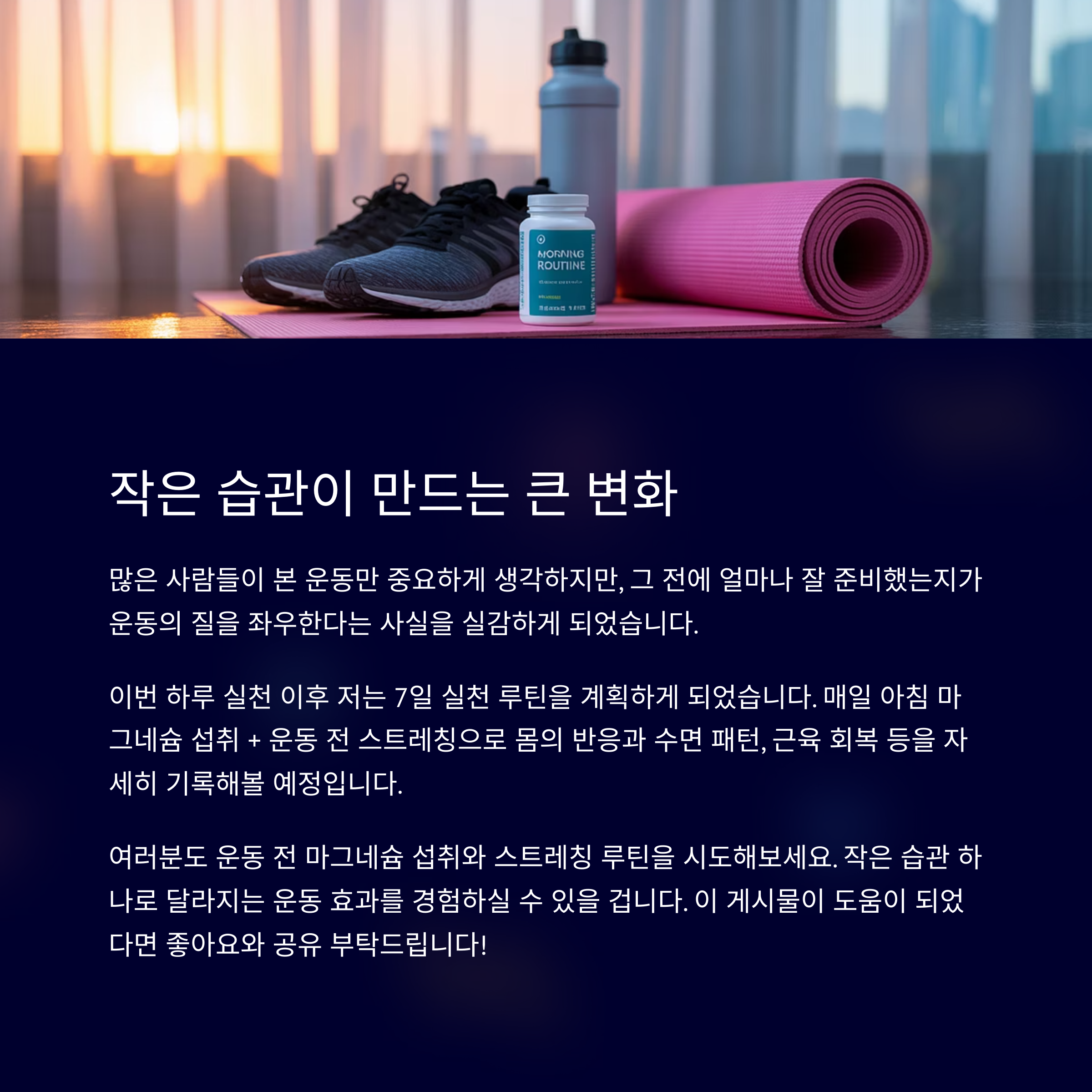 매일 아침 마그네슘 섭취 + 운동 전 스트레칭으로