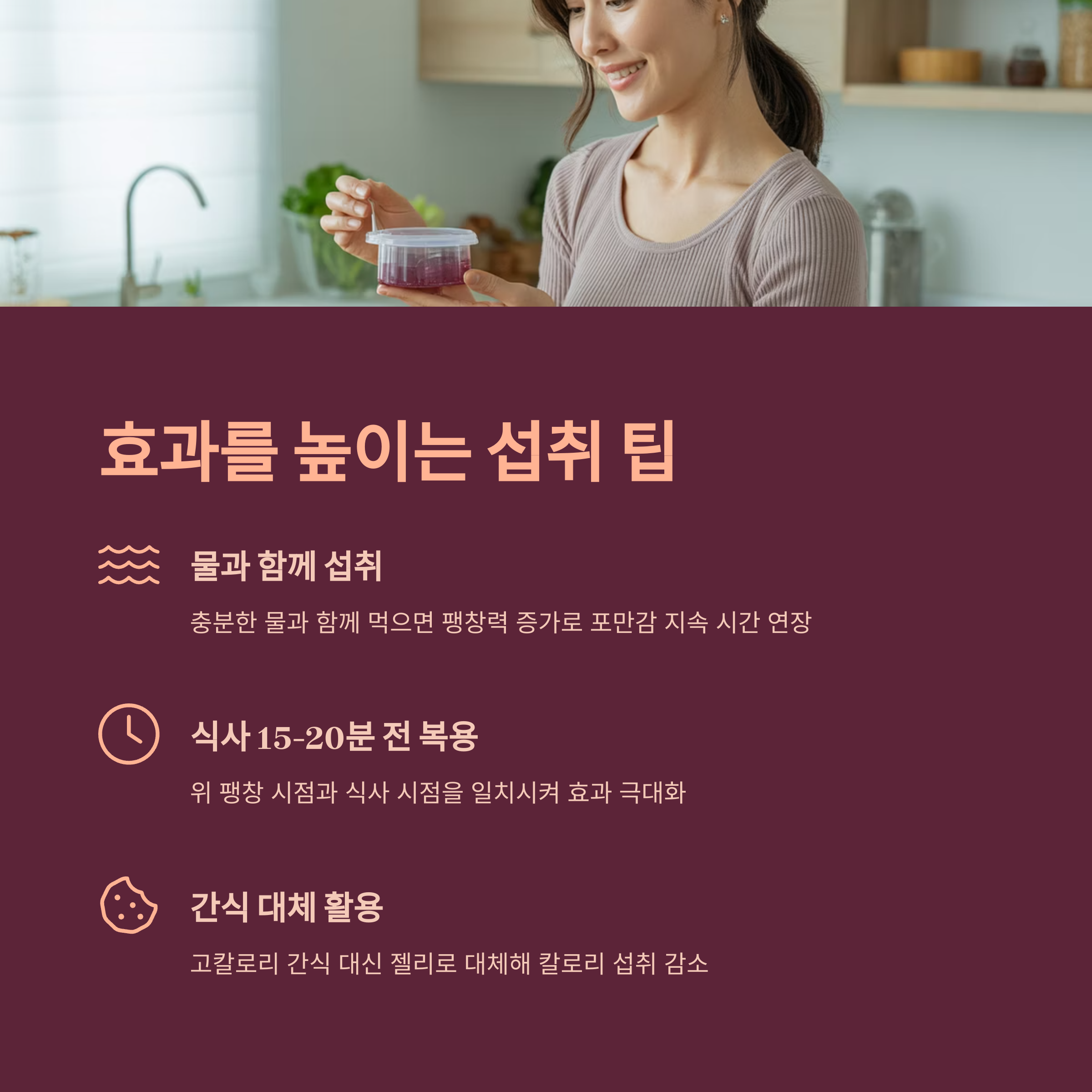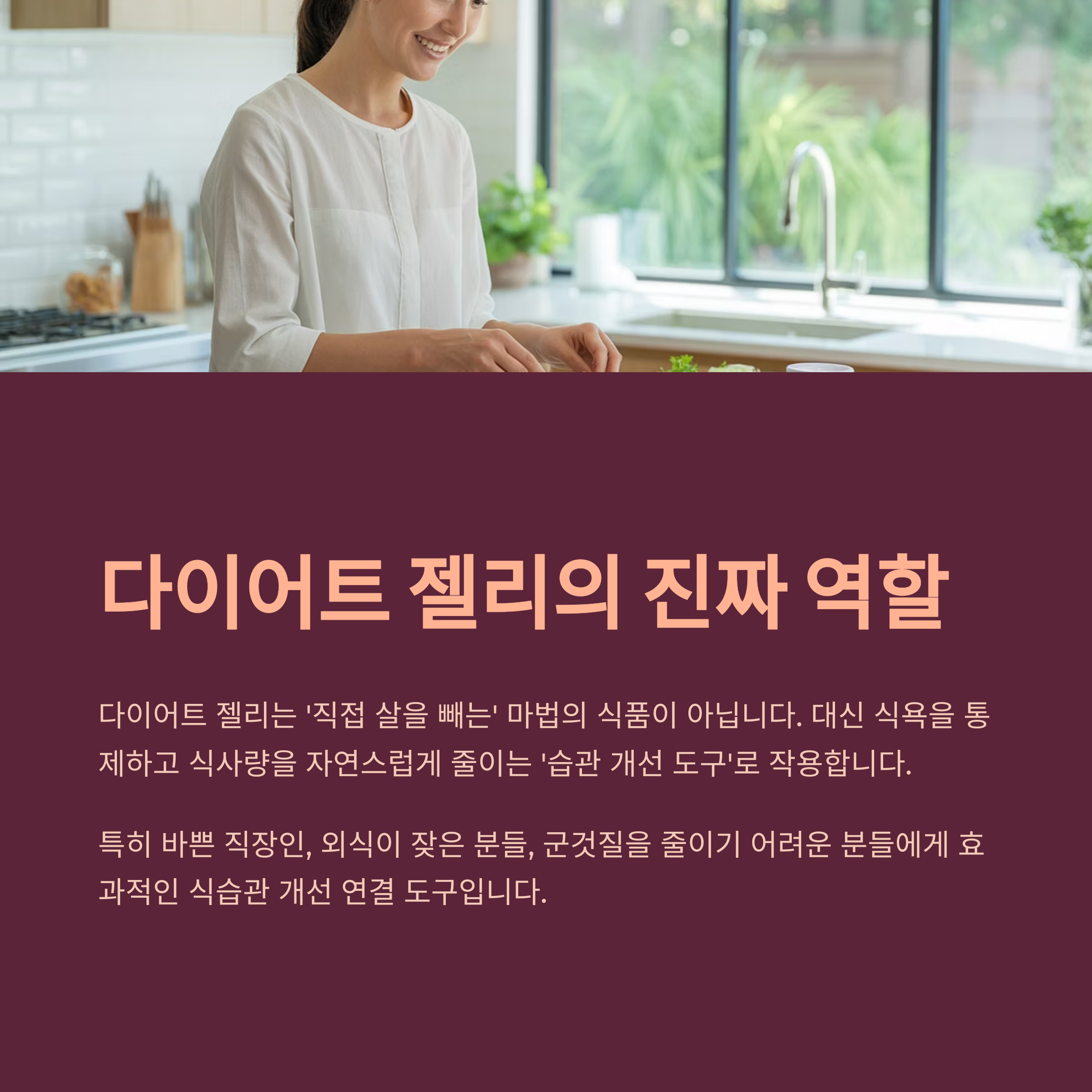 결론: 다이어트 젤리는 먹는 양을 줄이는 ‘습관 개선 도구’