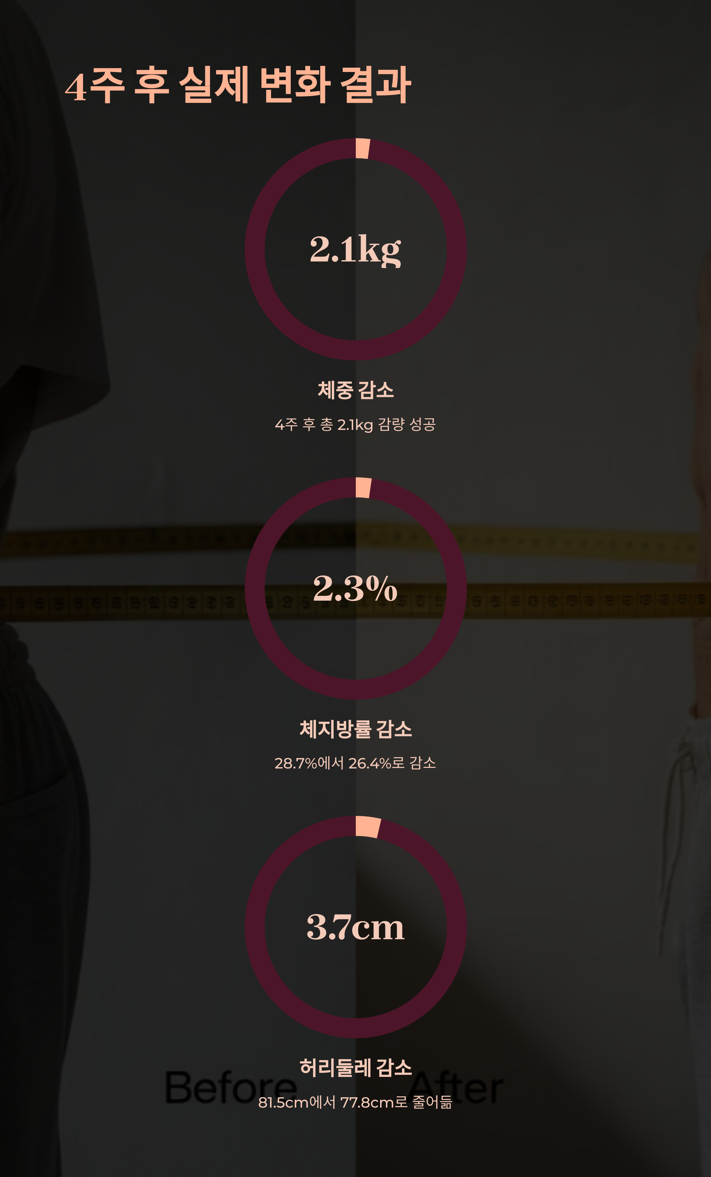 STEP 3. 4주간 섭취 후 체중·체지방률 변화와 포만감 유지
