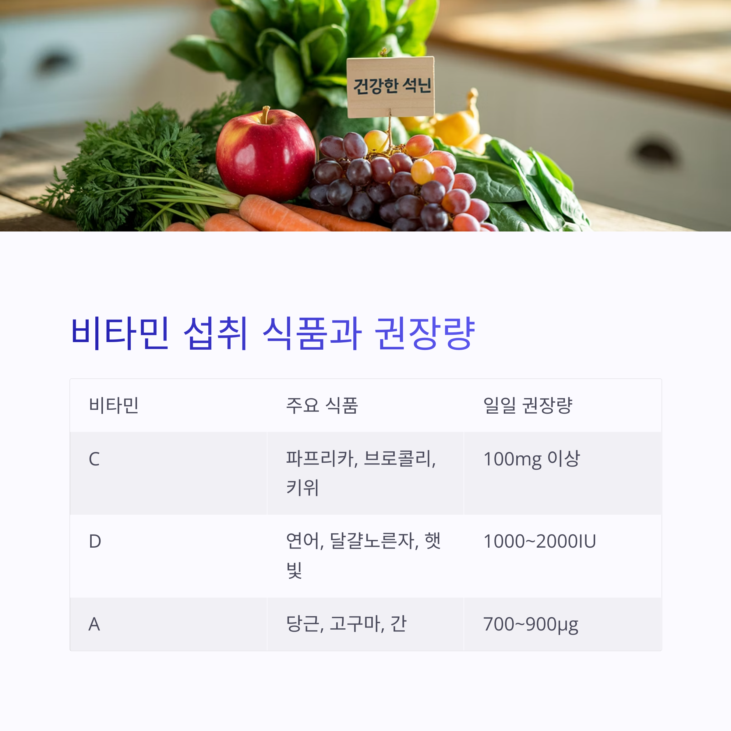 스텝 2: 비타민 섭취에 좋은 식품과 일일 권장량 정리