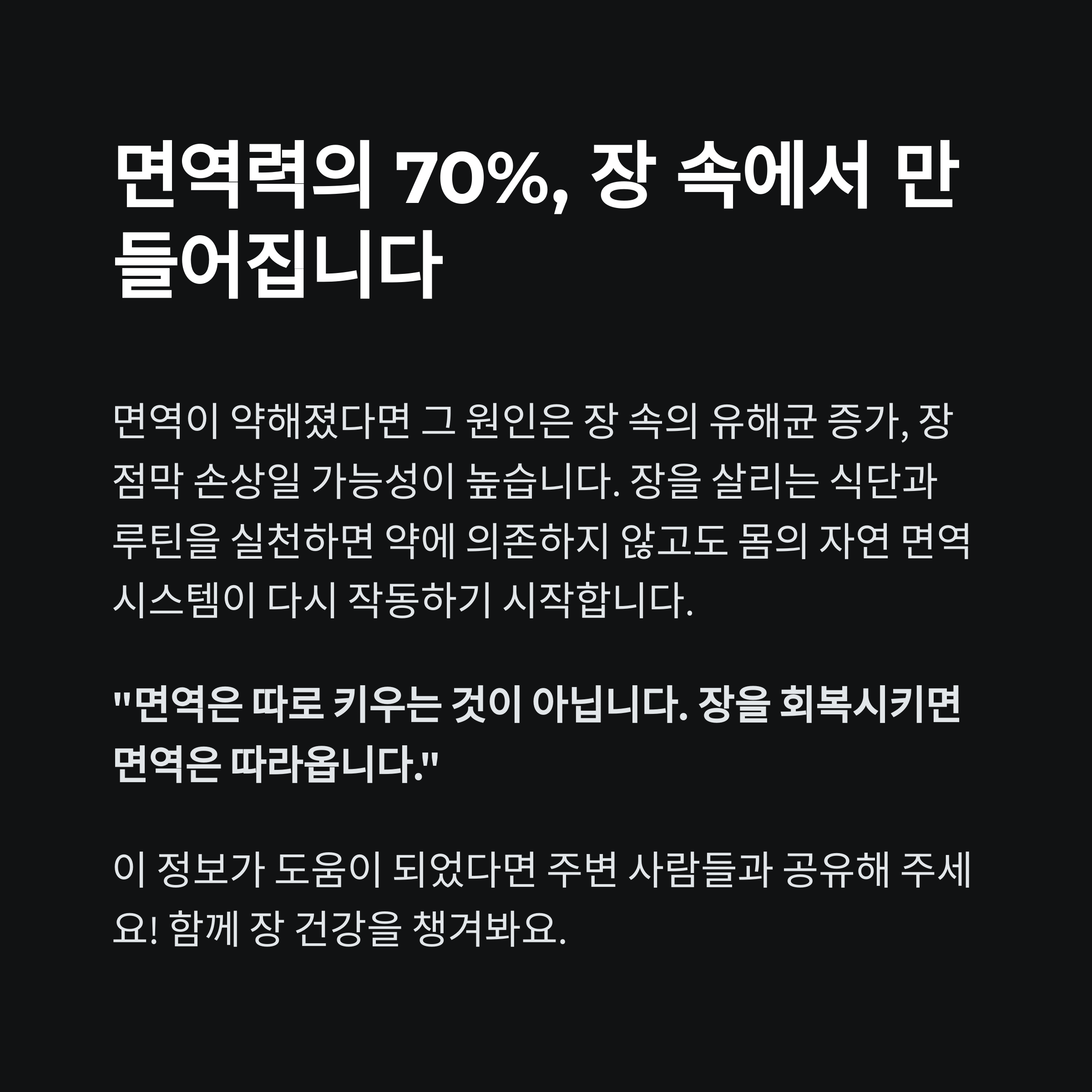면역은 약이 아닌, 장 건강 회복으로부터 시작된다는 것을 체감한 변화였습니다