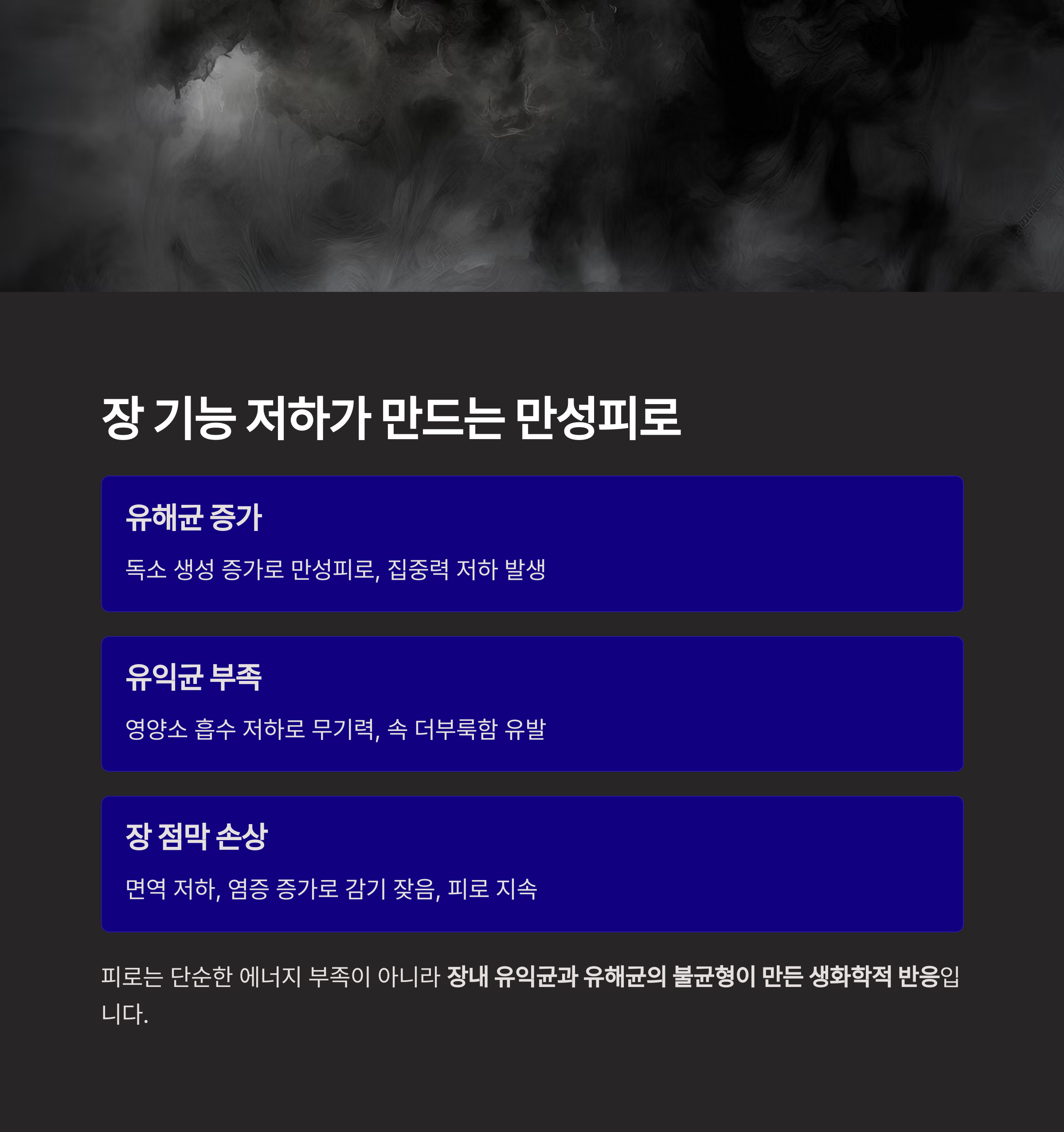 이번 글에서는 피로와 장의 관계를 이해하고,