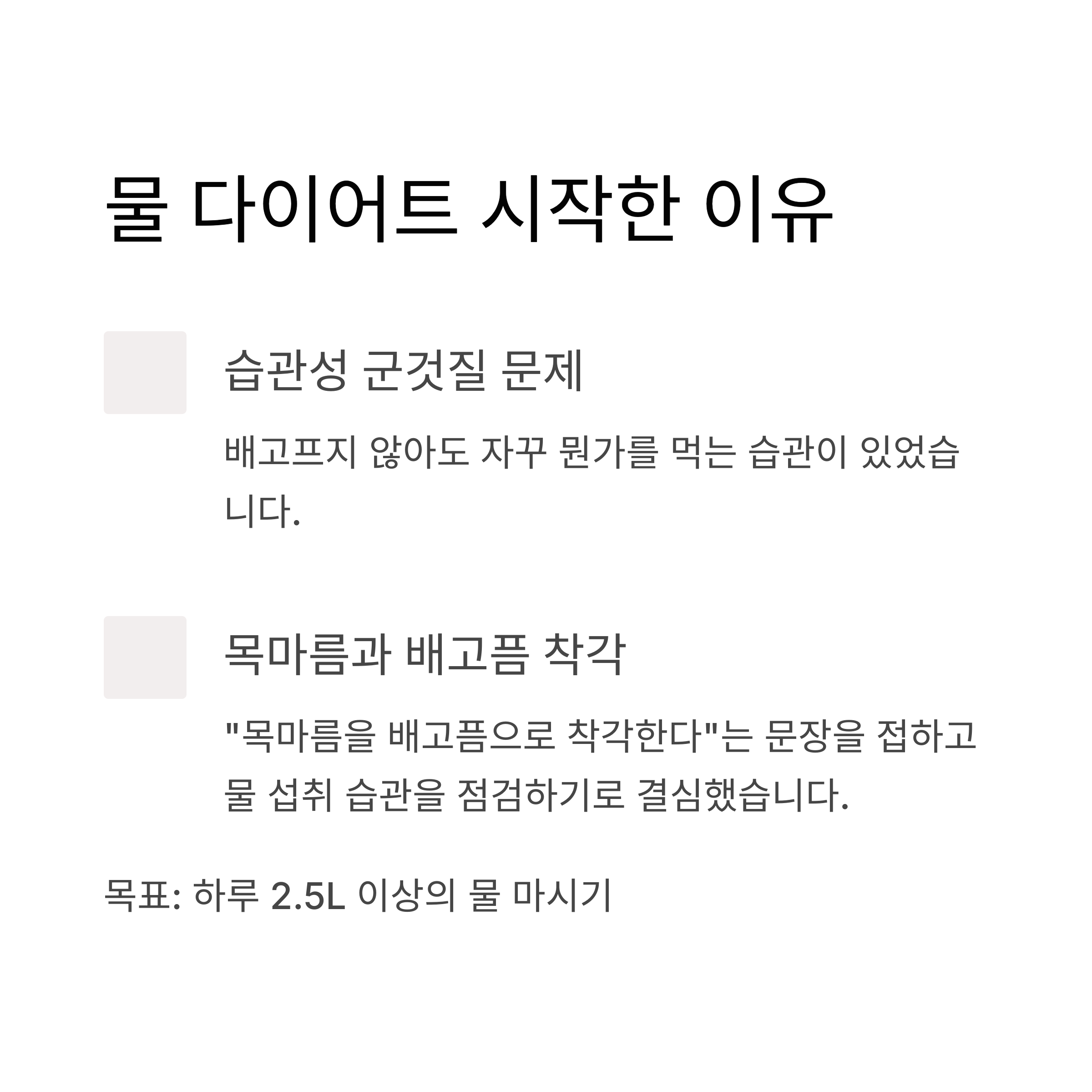 STEP 1. 물 다이어트를 결심하게 된 계기와 초기 계획
