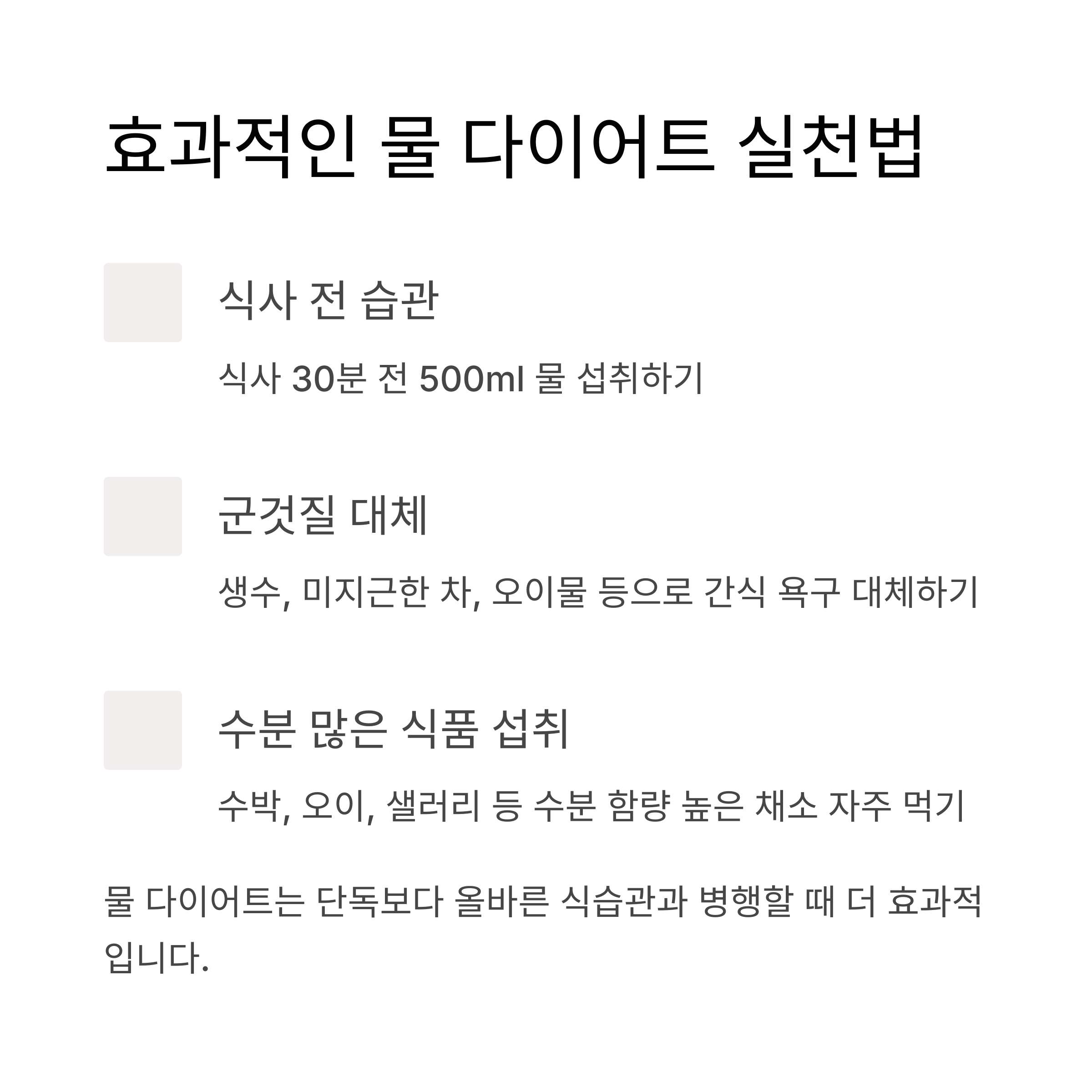 결론: 물 다이어트는 ‘보조’가 아닌 ‘기초’이다