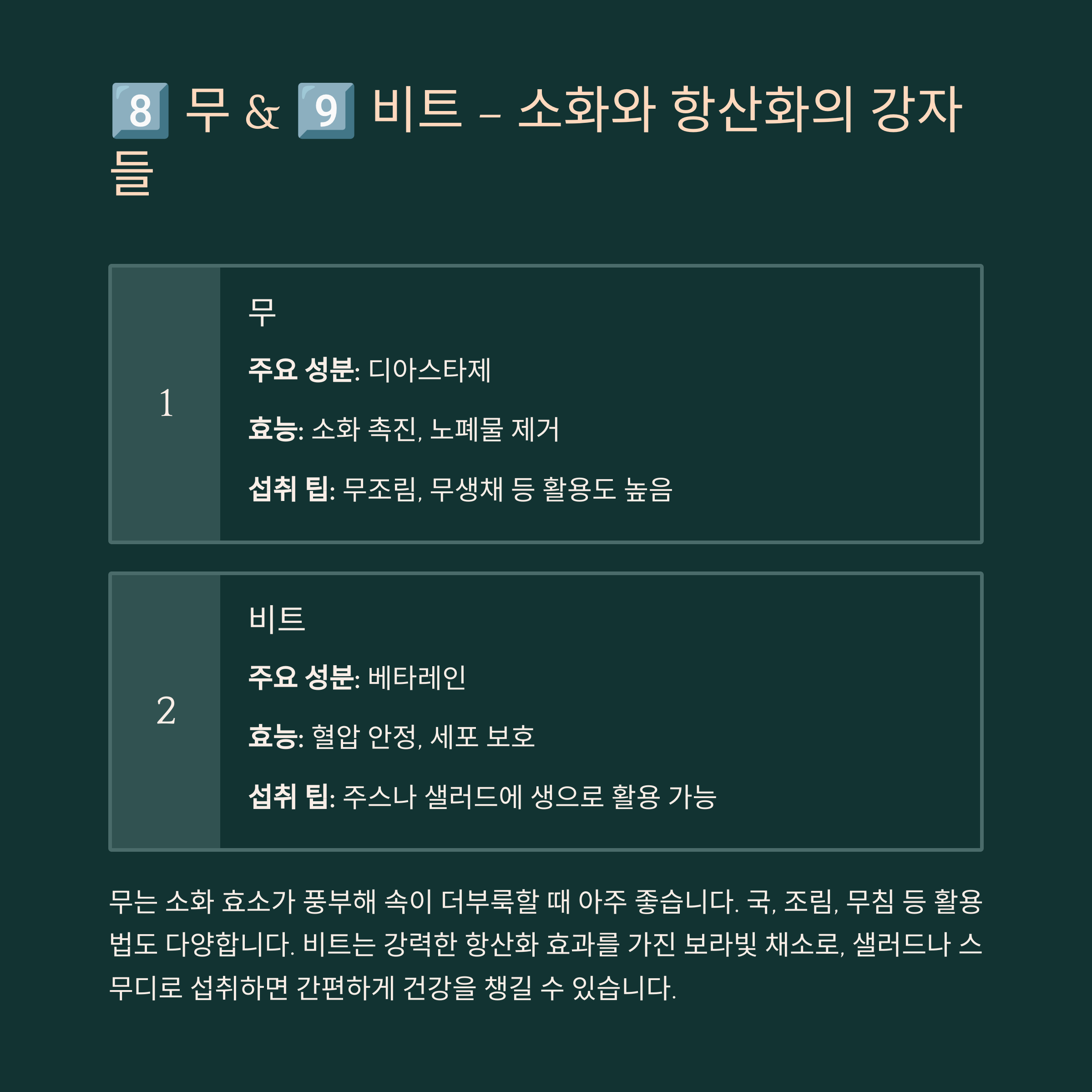 8️⃣ 무 – 소화와 해독의 천연 도우미