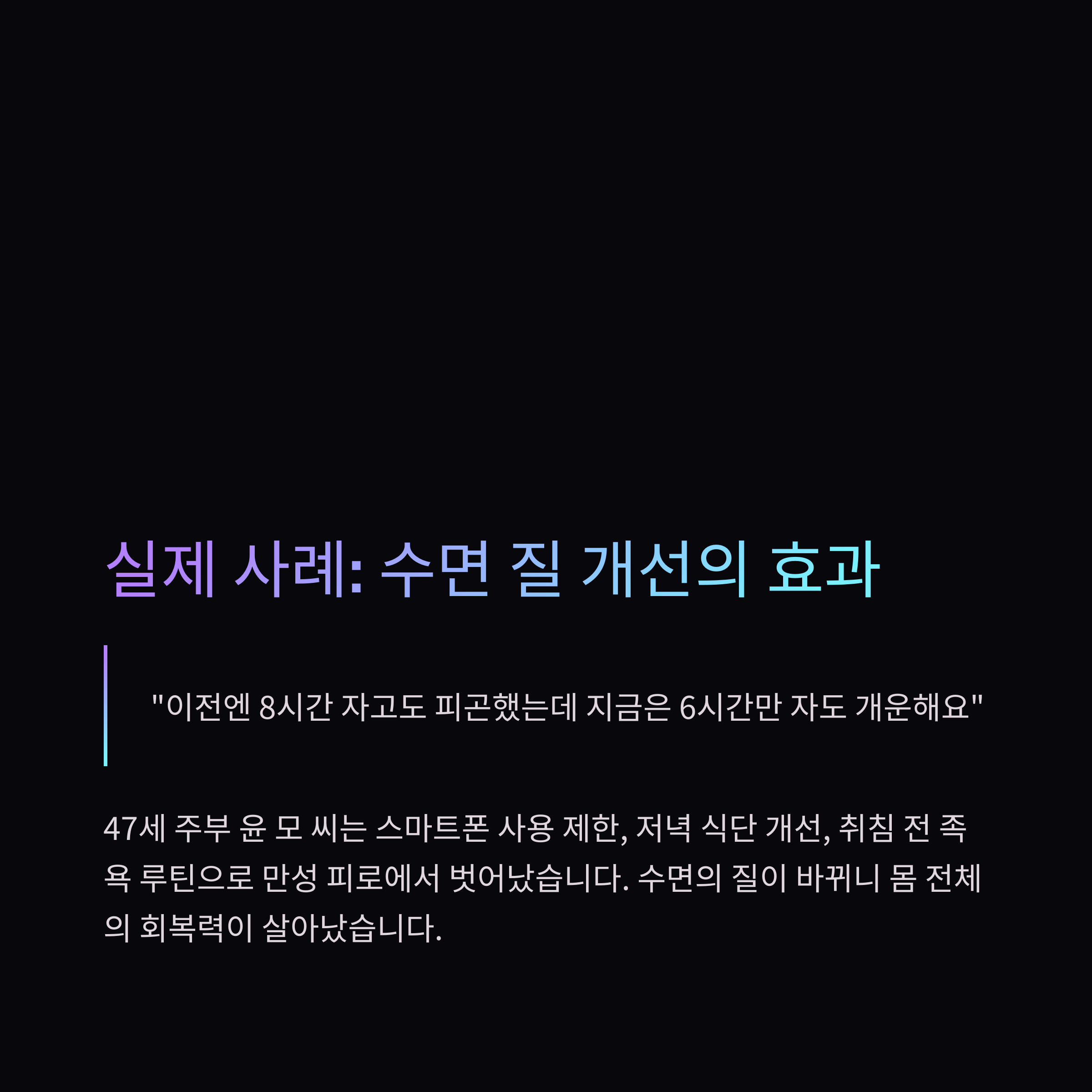 수면의 질이 바뀌니 몸 전체의 회복력이 살아난 사례입니다