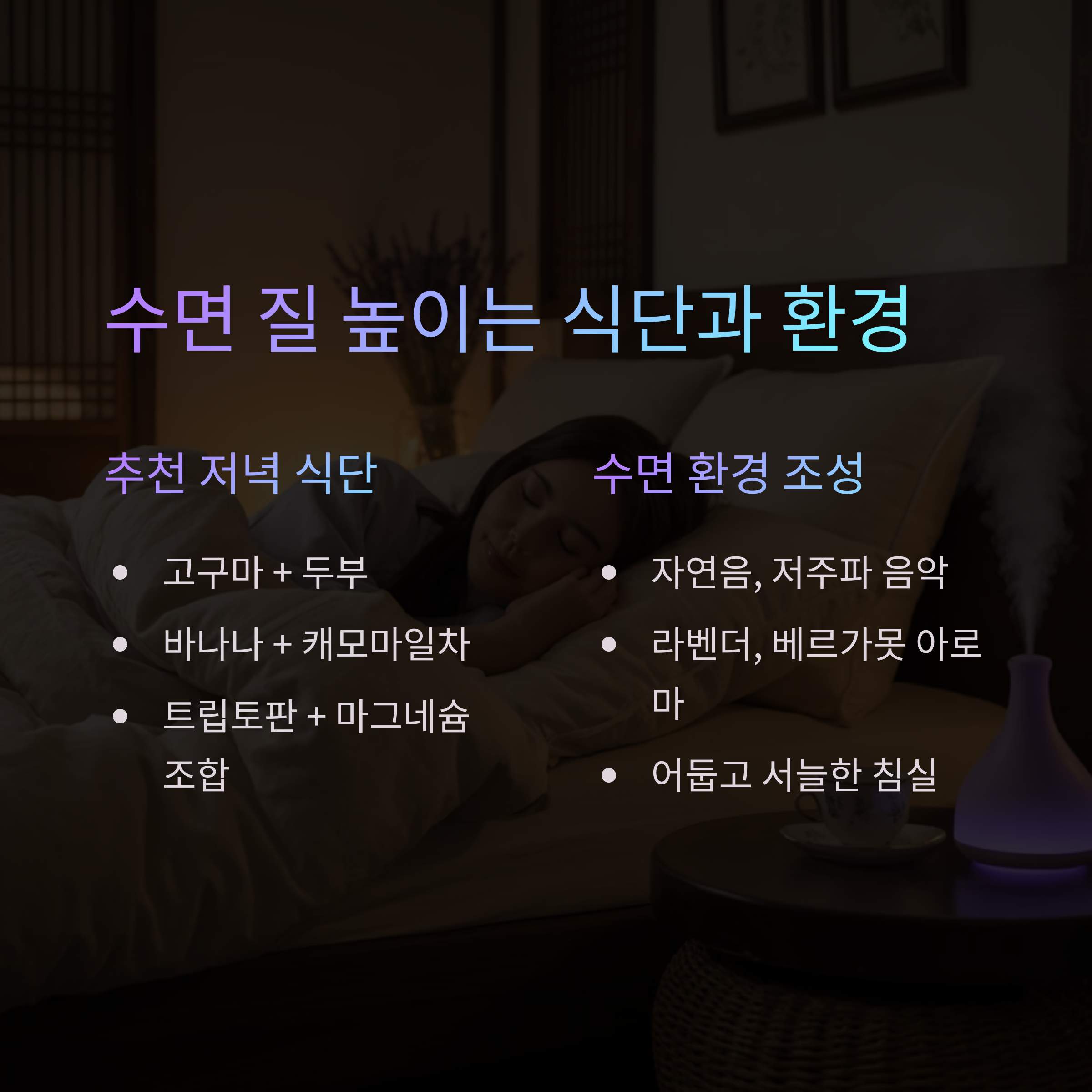 취침 1시간 전 스마트기기 OFF, 무드조명 뇌파 이완, 멜라토닌 분비 유도