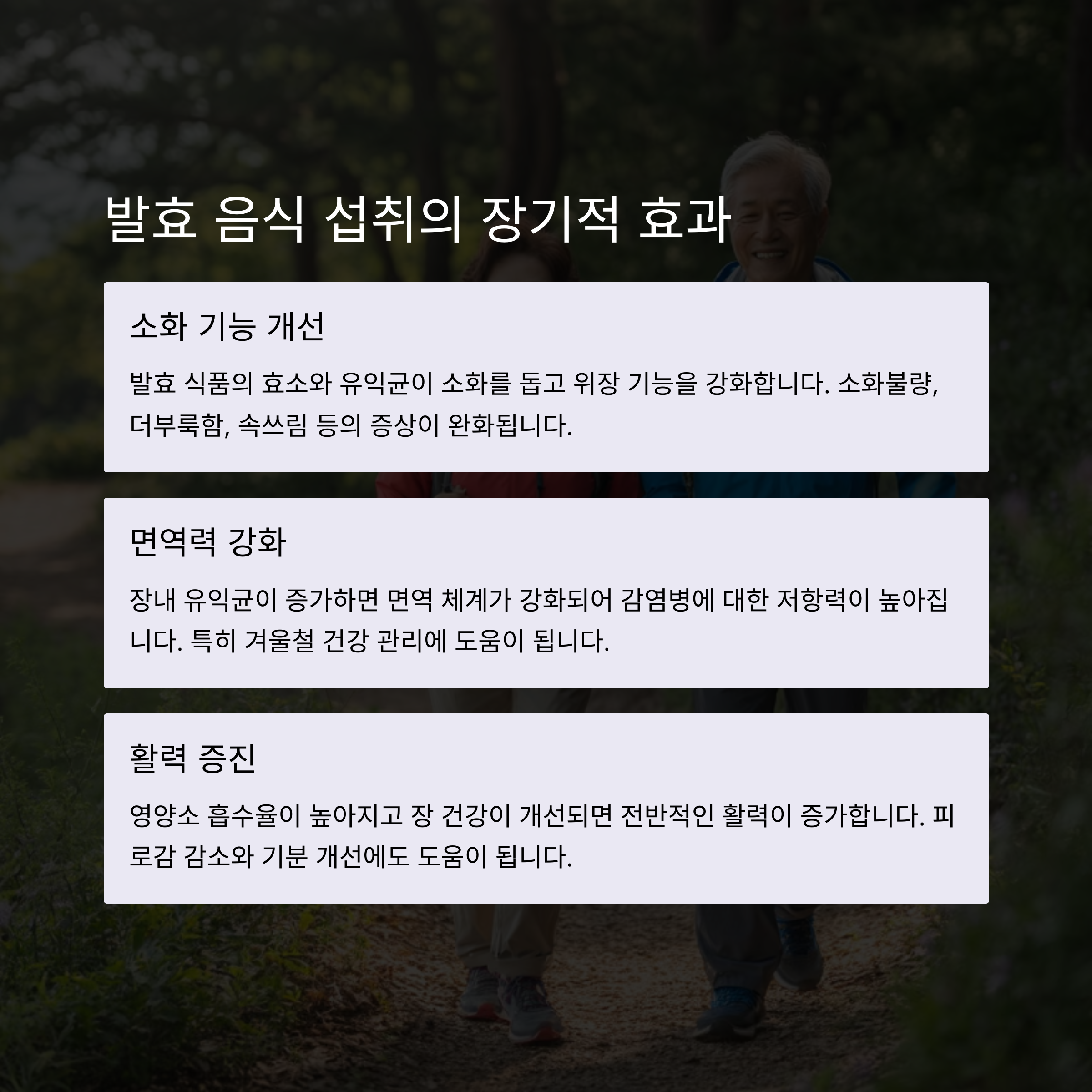 - 영양소 흡수율 향상: 발효 과정에서 비타민과 미네랄 흡수력 증가