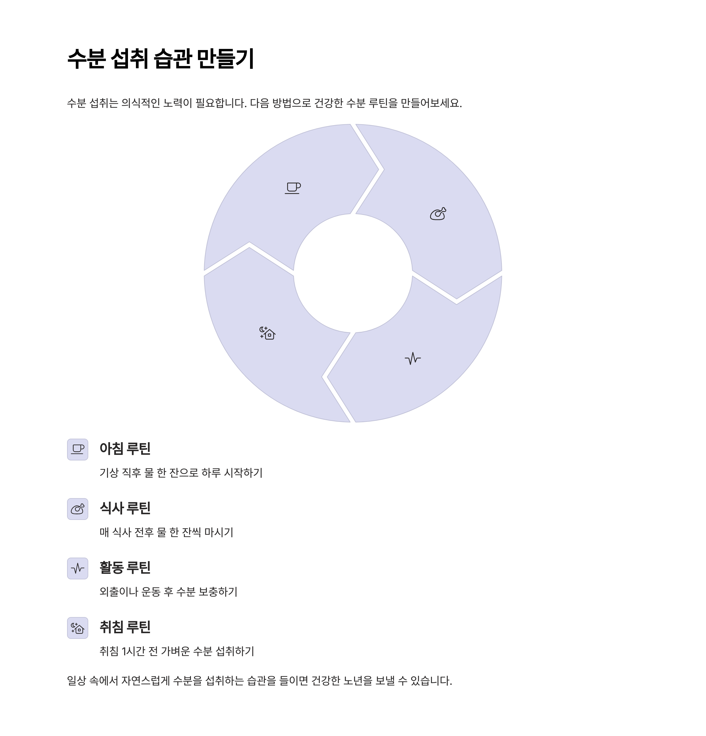 ✅ 2. 하루 수분 권장량과 섭취 타이밍