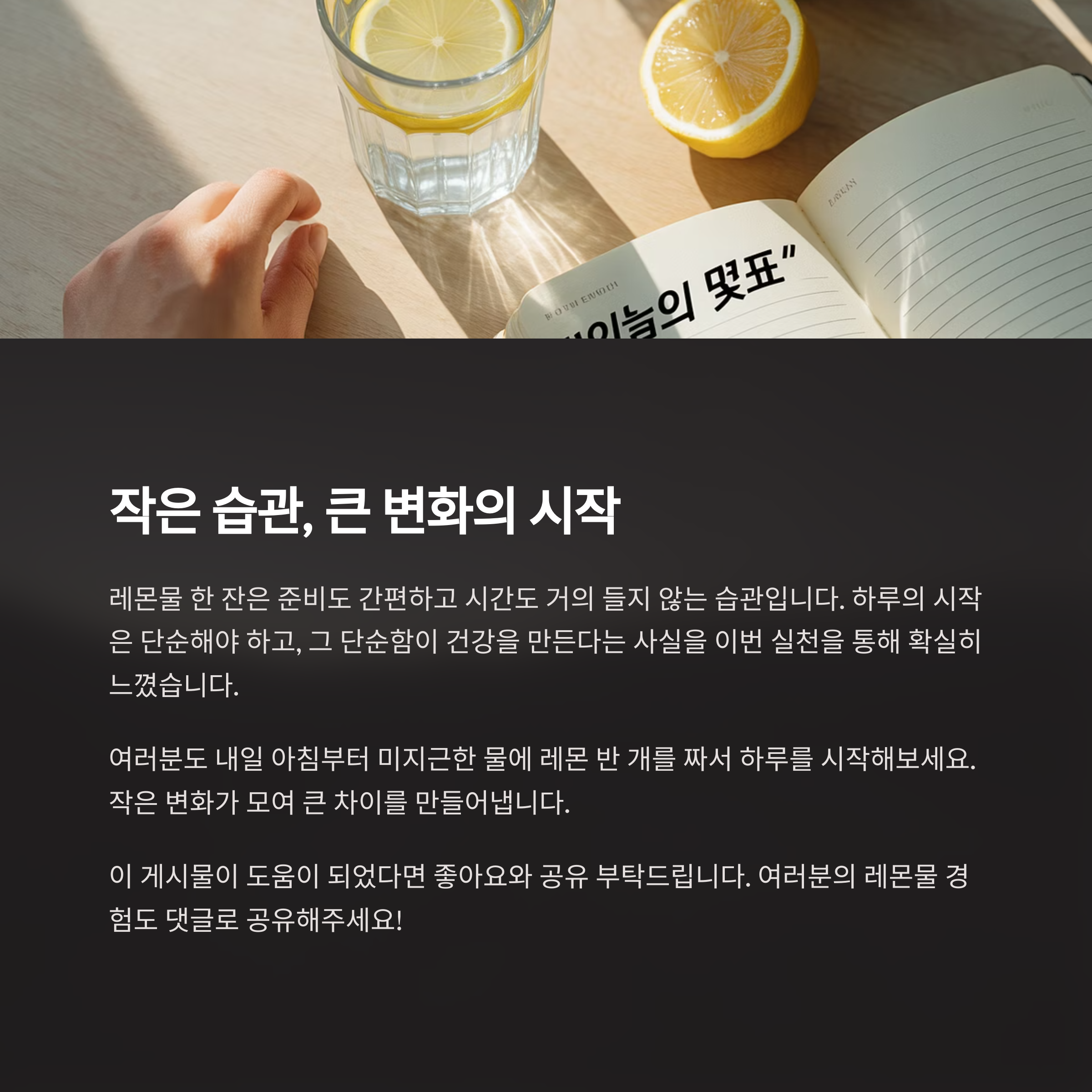 이번 글에서는 ‘아침 공복 + 레몬물’ 조합을 하루 동안 실천해보고