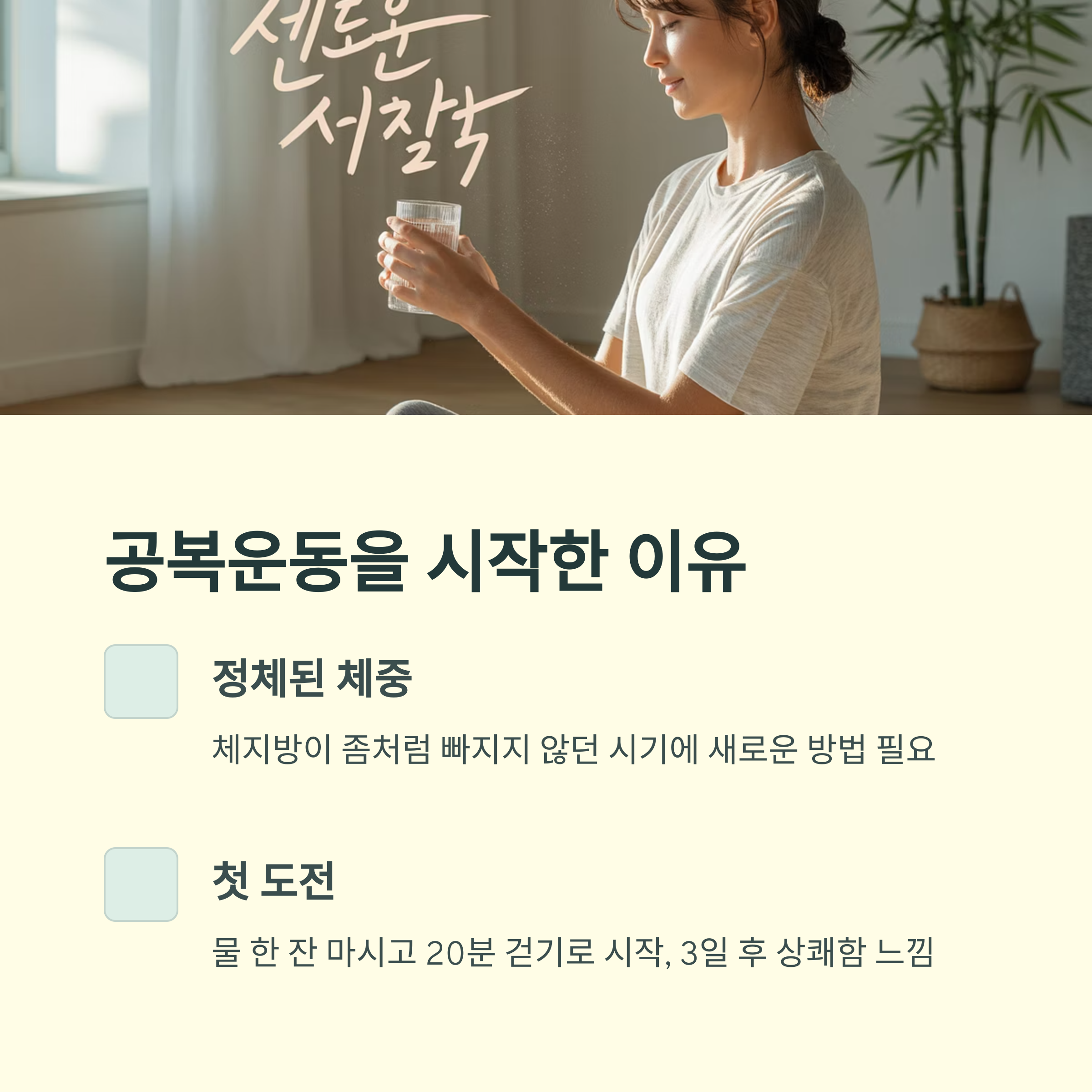 아침 공복운동을 시도하게 된 계기는 다름 아닌 정체된 체중 때문이었습니다. 체지방이 좀처럼 빠지지 않던 시기, 여러 정보를 찾던 중 ‘공복 운동이 지방 연소에 유리하다’는 글을 발견하게 되었죠. 마침 아침 시간 여유도 있어 직접 실천해보기로 했습니다.