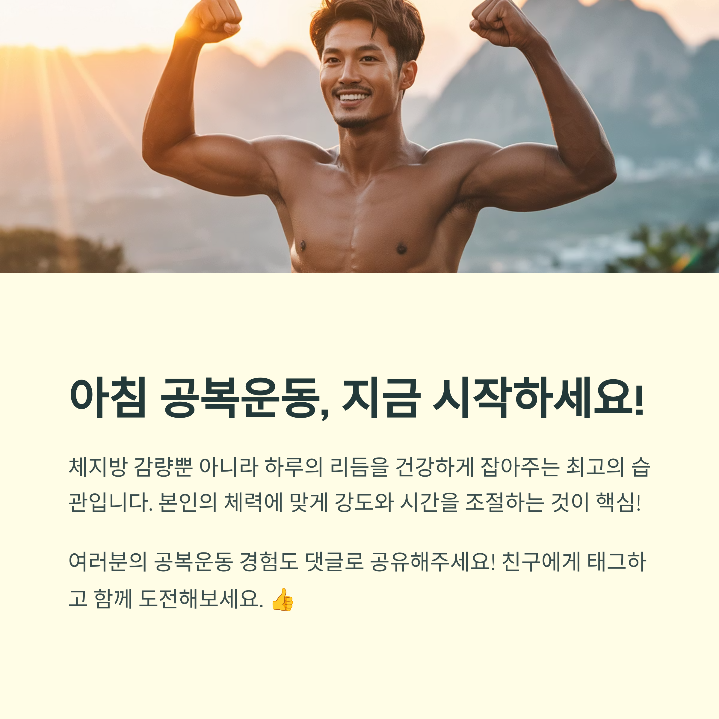 “지금 시작할 수 있는 가장 쉬운 다이어트 방법이 무엇일까?”라는 질문에, 저는 단연코 “아침 공복운동”을 추천하고 싶습니다. 몸과 마음을 동시에 가볍게 만들어주는 최고의 하루 시작법이었습니다.