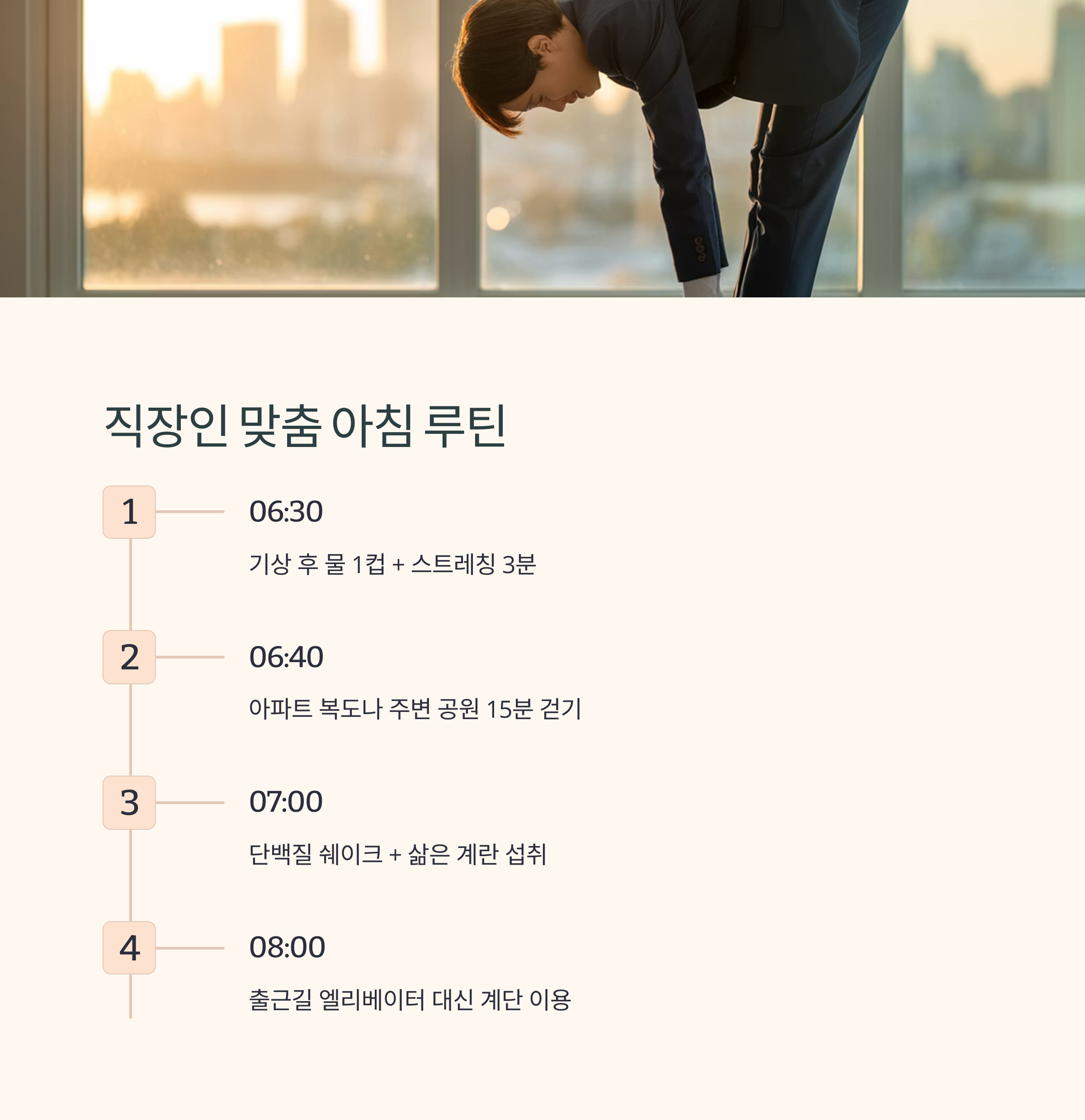 STEP 3 : 직장인도 가능한 아침 공복 루틴 – 현실 적용법