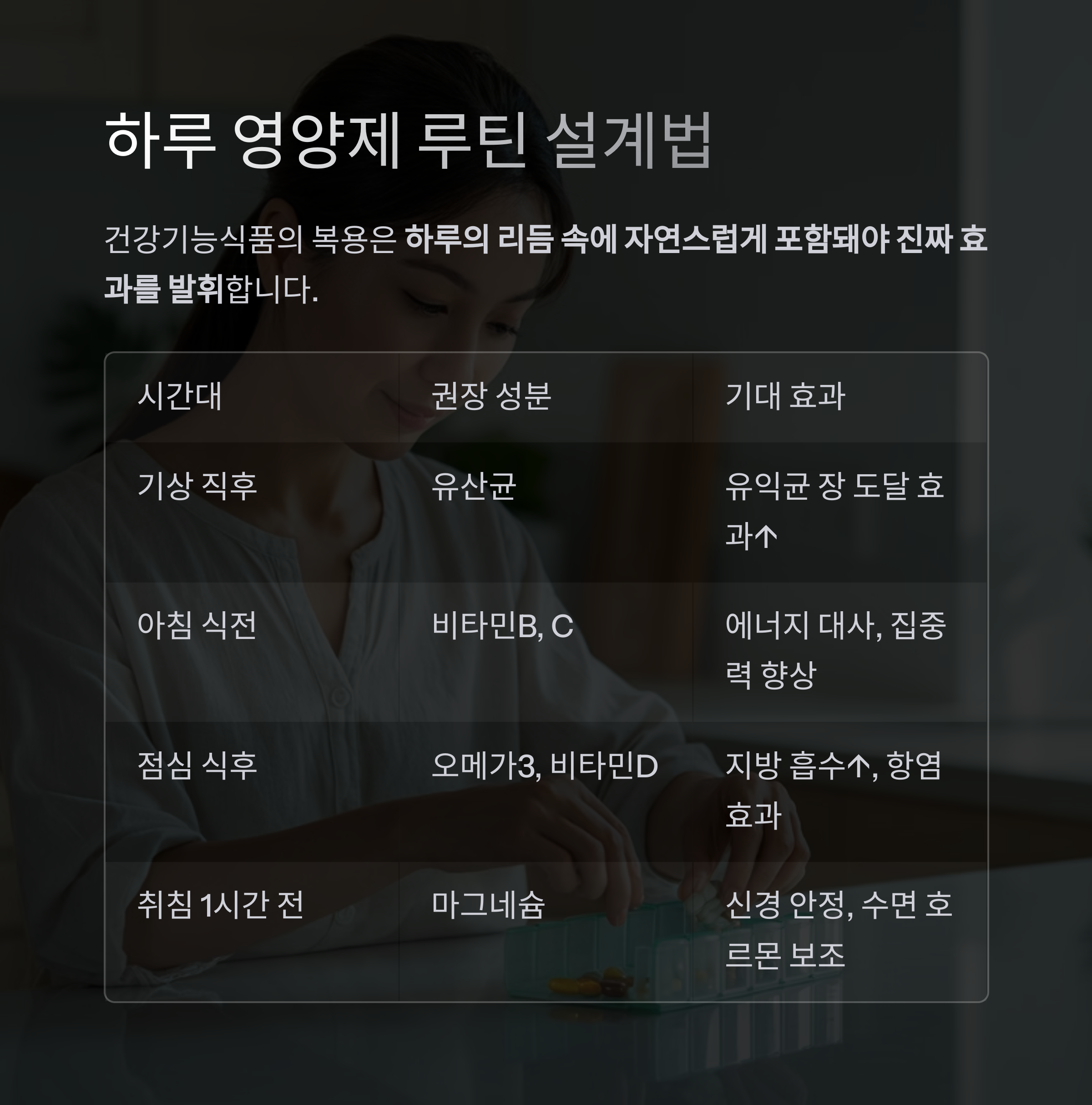종류별 건강기능식품 복용 시간과 루틴 정리법을 자세히 안내합니다