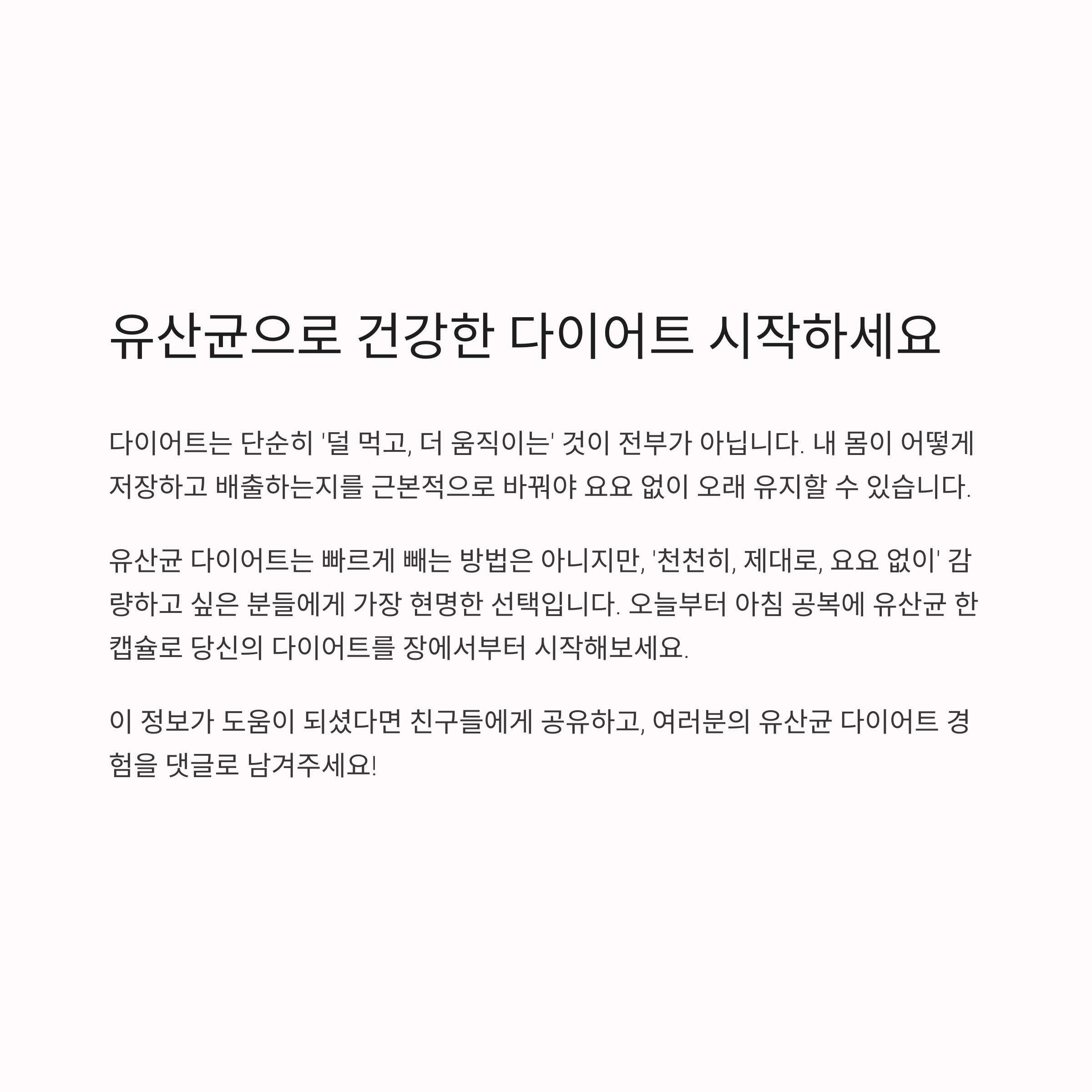 결론 : 유산균은 장 건강을 넘어, 다이어트의 기초 체질을 바꿔준다