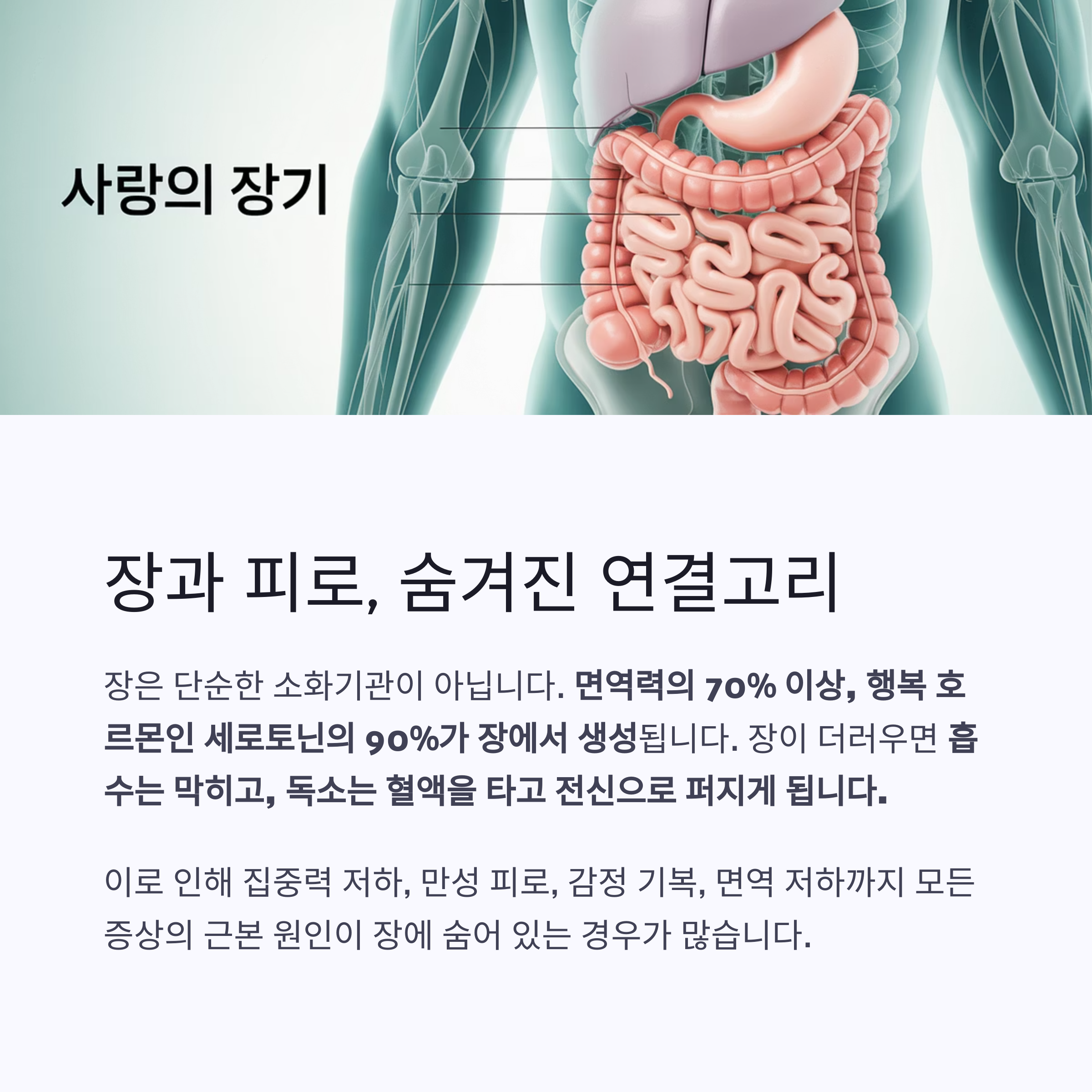 장은 전신 건강의 중심이며, 장 문제는 다양한 증상으로 번집니다