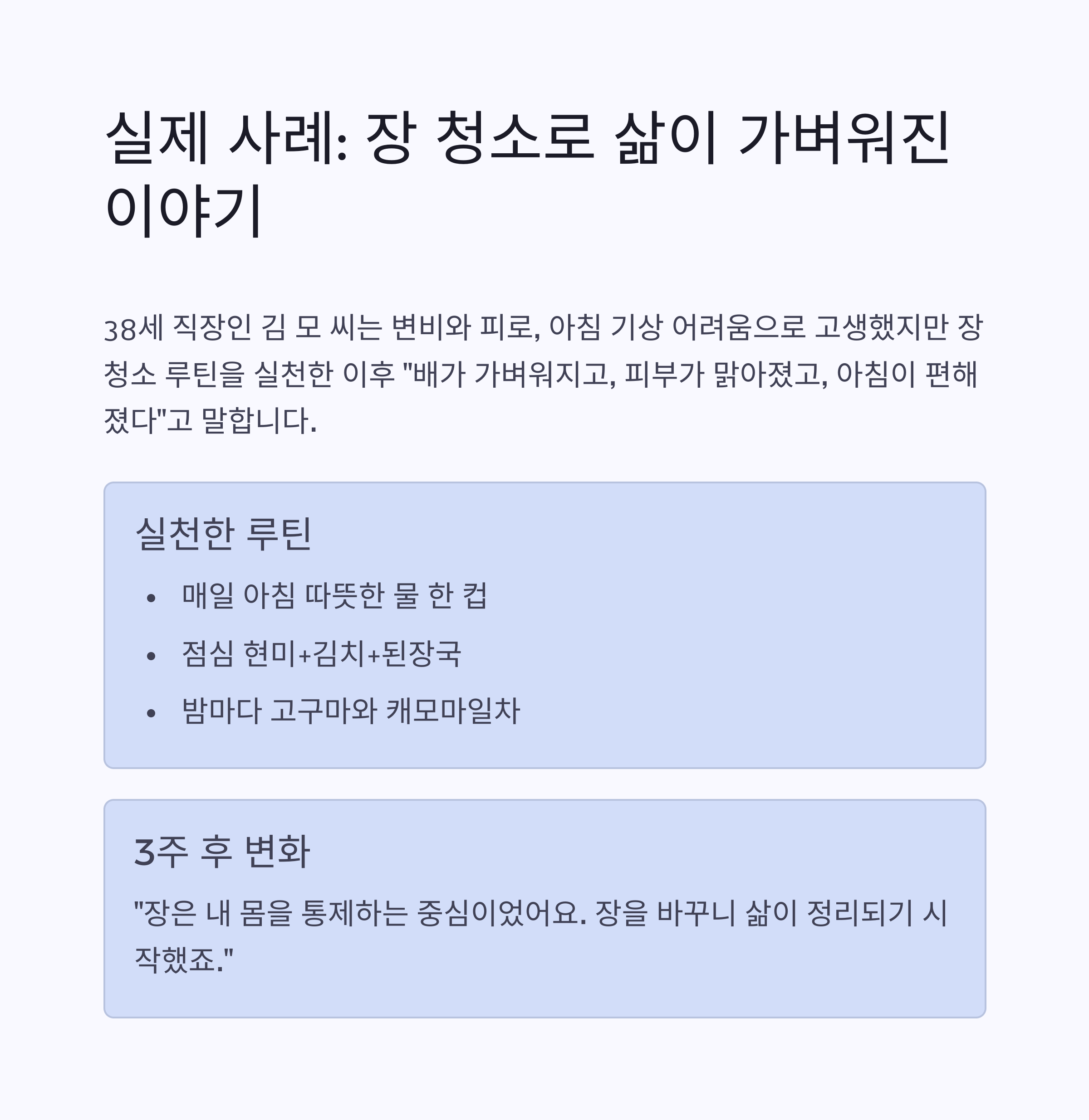 사례 스토리: “장은 비웠을 뿐인데, 삶이 가벼워졌어요”