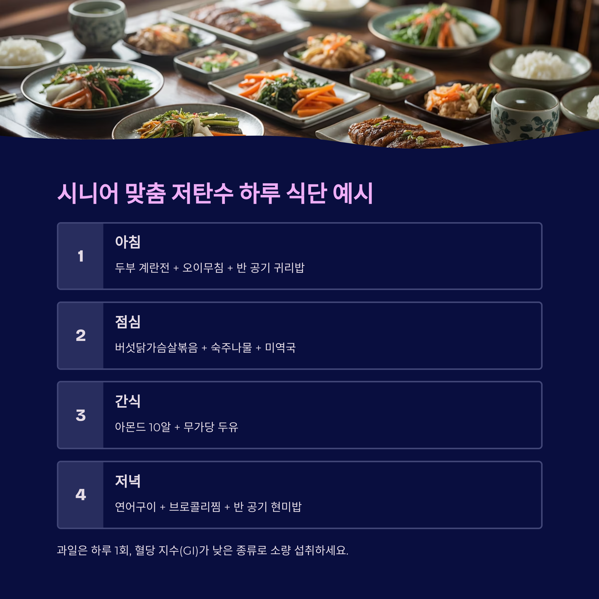 ✅ 3. 시니어 맞춤 저탄수 하루 식단 예시