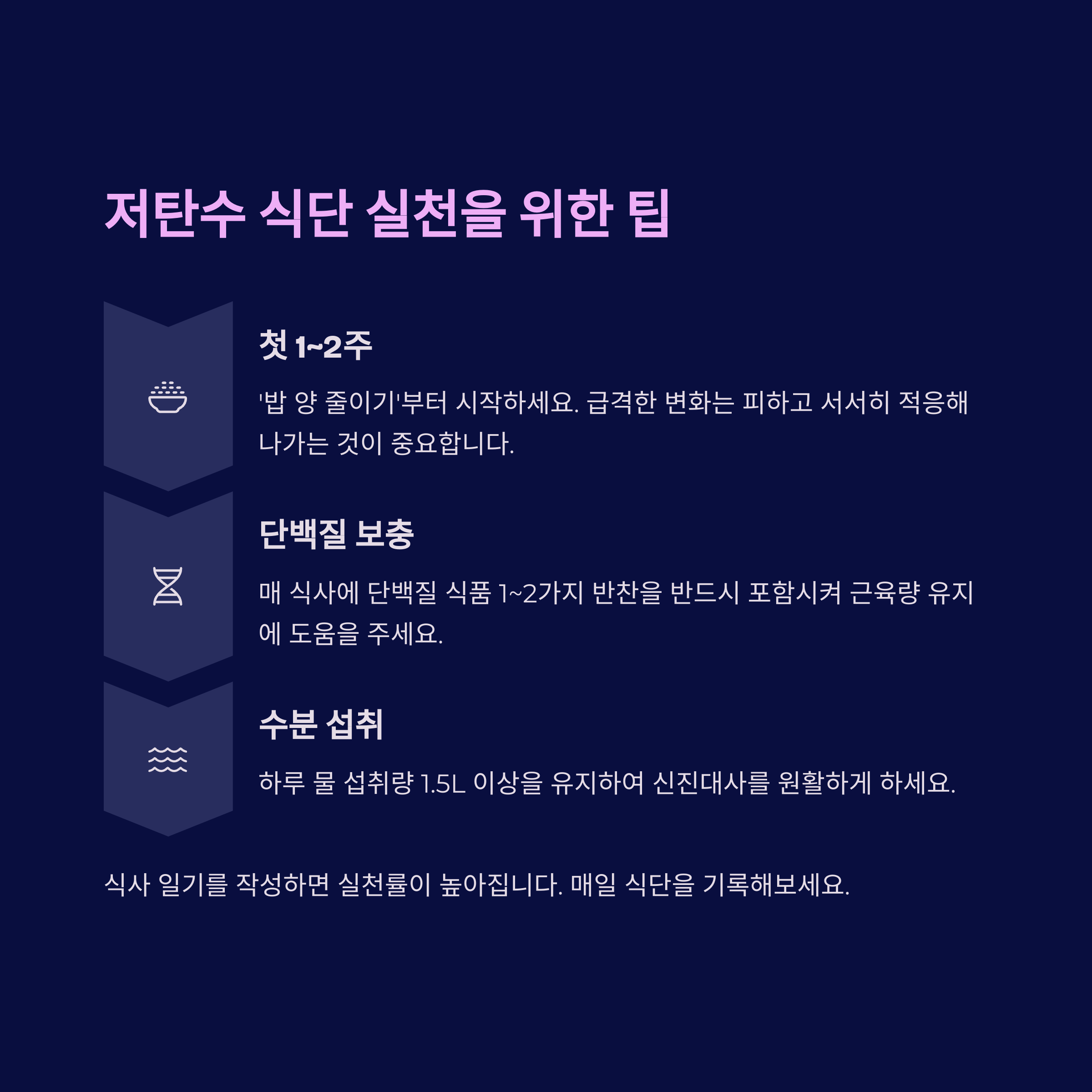 ✅ 4. 저탄수 식단 실천을 위한 팁