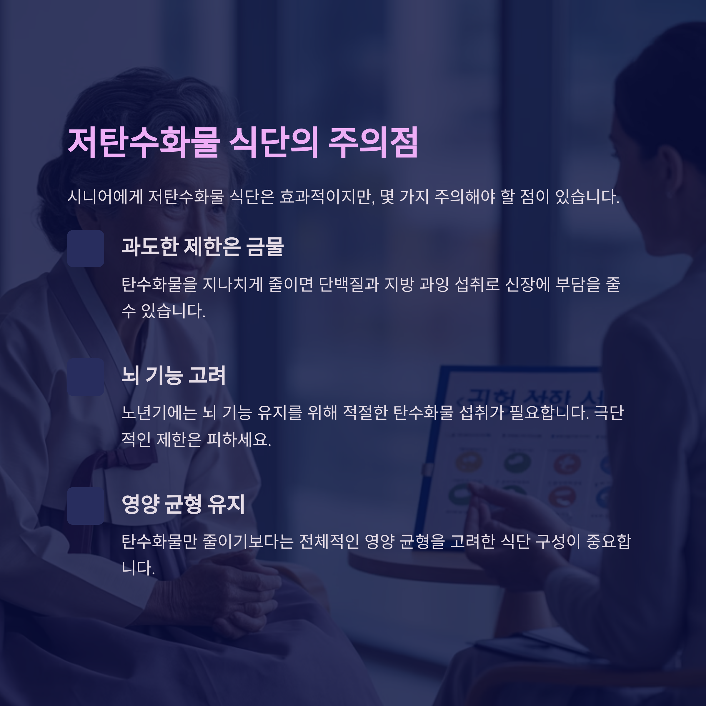 - 노년기엔 뇌 기능 저하 우려 있어 극단적 제한은 피해야