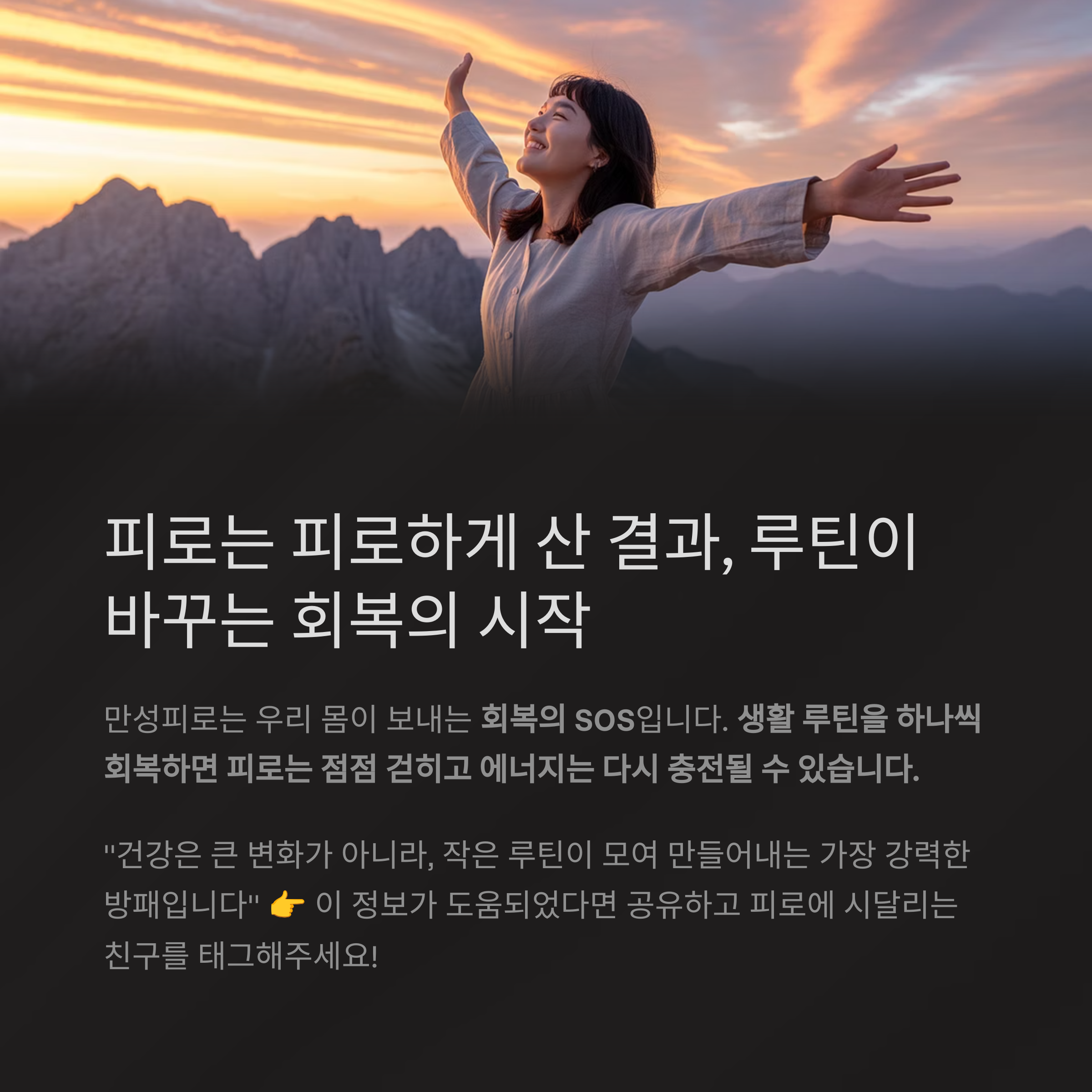 지속 가능한 루틴이야말로 피로를 끊는 유일한 전략임을 체감하게 된 것입니다