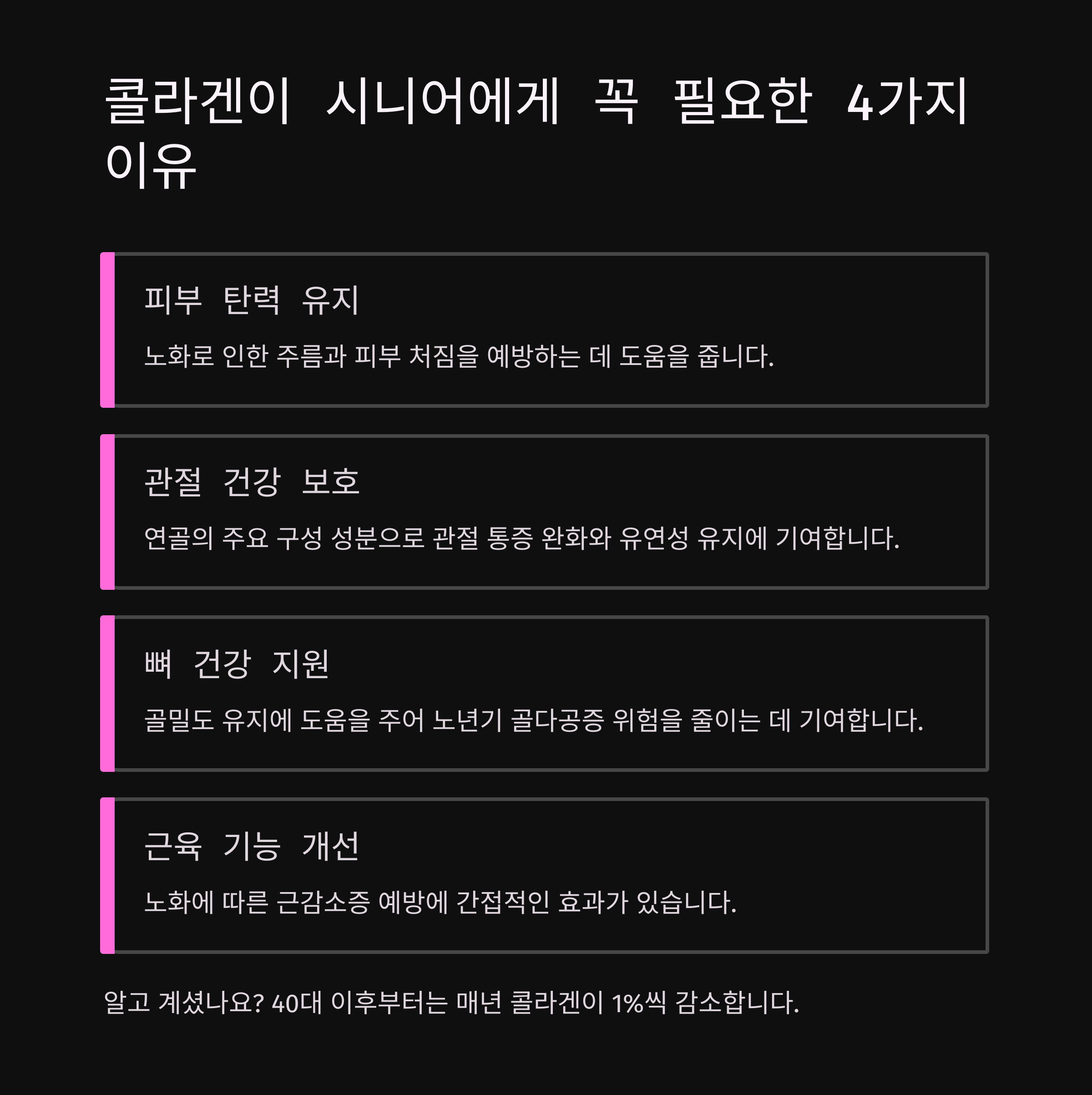 ✅ 1. 콜라겐이 시니어에게 필요한 이유
