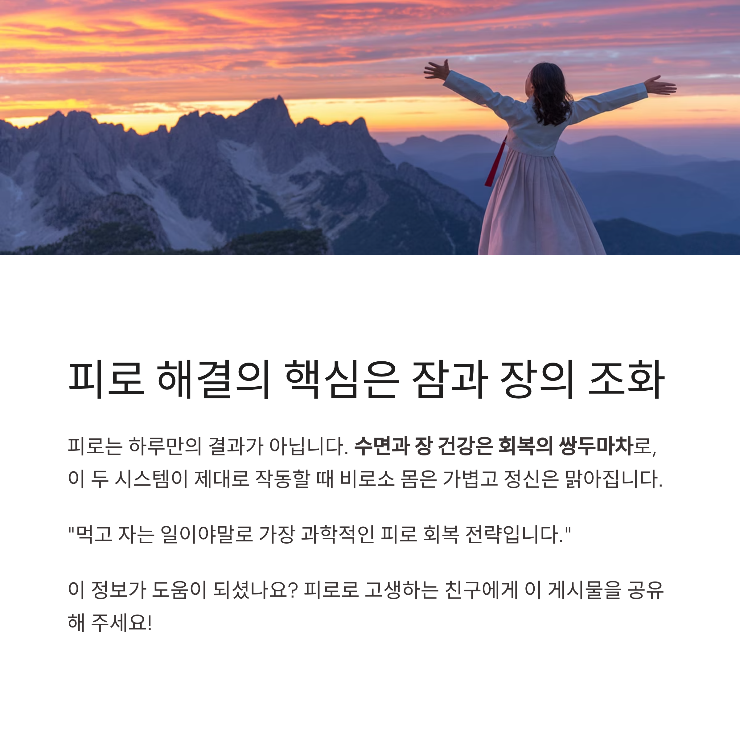 피로 회복은 장-수면 시스템의 조화가 핵심임을 직접 경험한 사례입니다