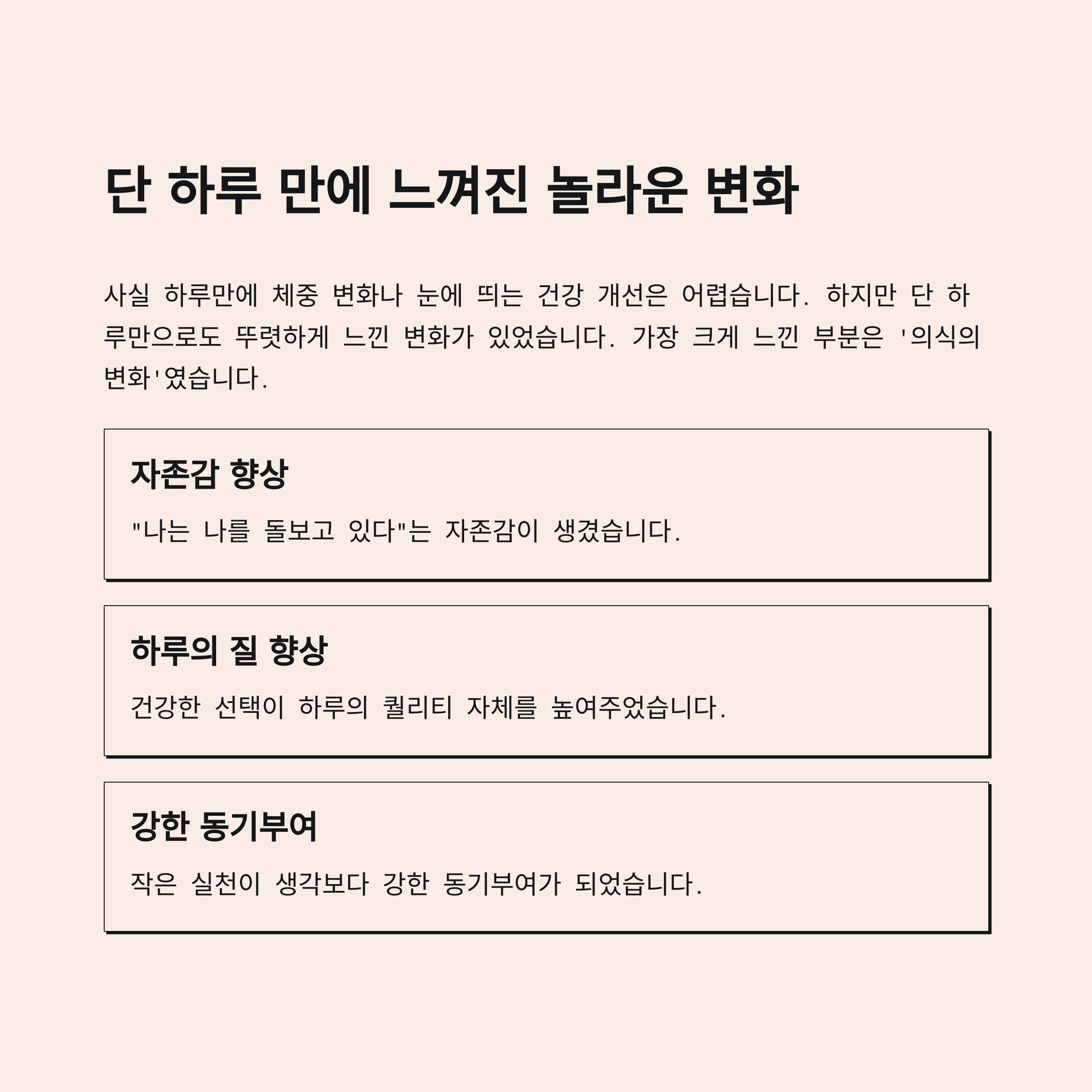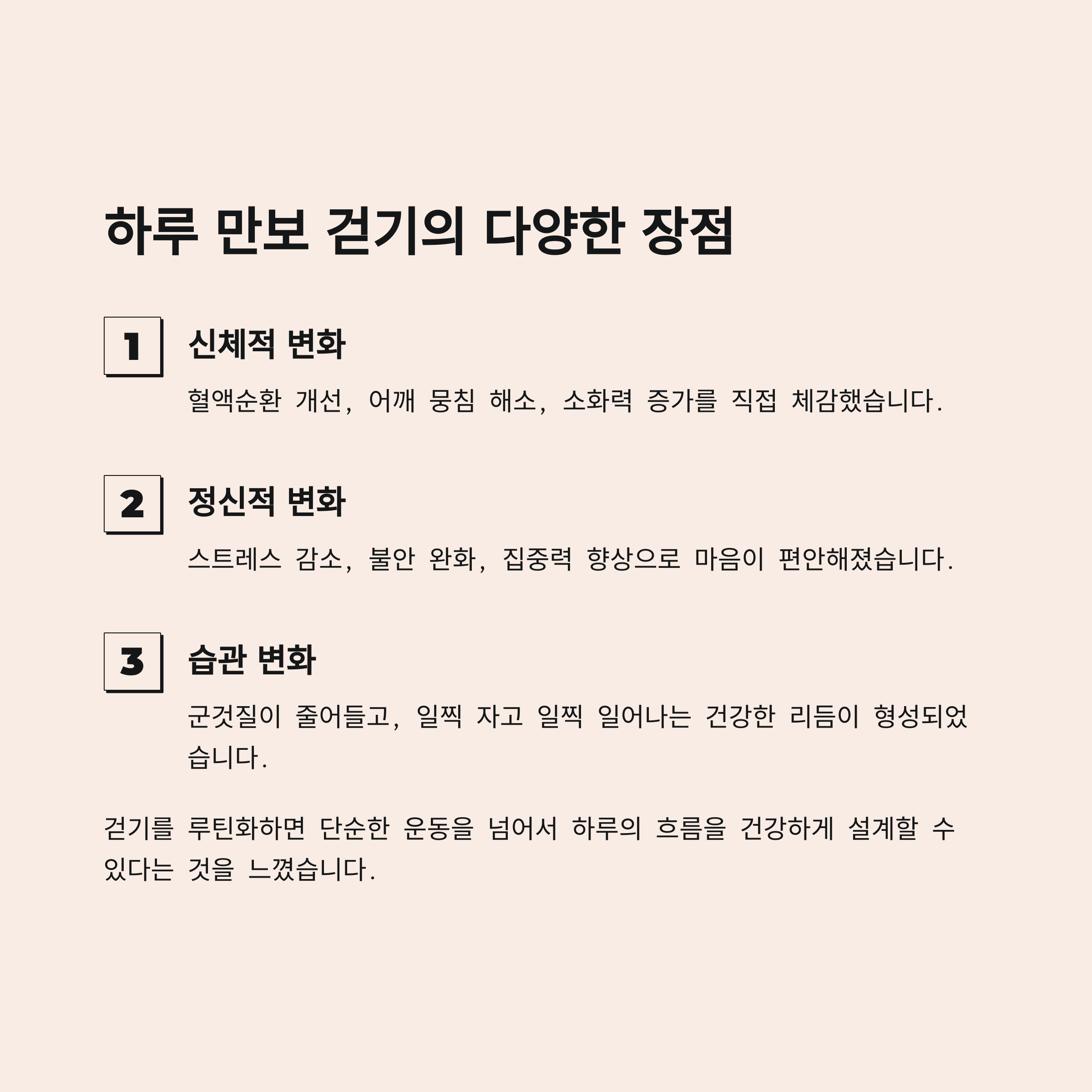 하루의 흐름을 건강하게 설계할 수 있다는 걸 느꼈습니다.