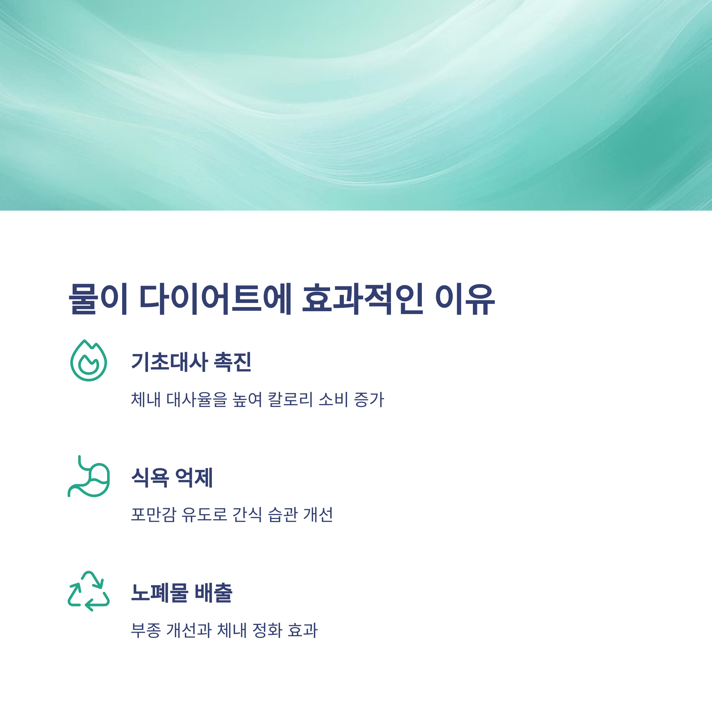 물이 다이어트에 효과적인 이유는 단순히 열량이 없기 때문이 아닙니다. 실제로 충분한 수분 섭취는 체내 대사율을 높이고, 신장 기능을 개선하여 노폐물 배출을 원활하게 합니다. 또한 지방 연소를 도와 체지방 감량에도 직접적인 영향을 미칠 수 있습니다.