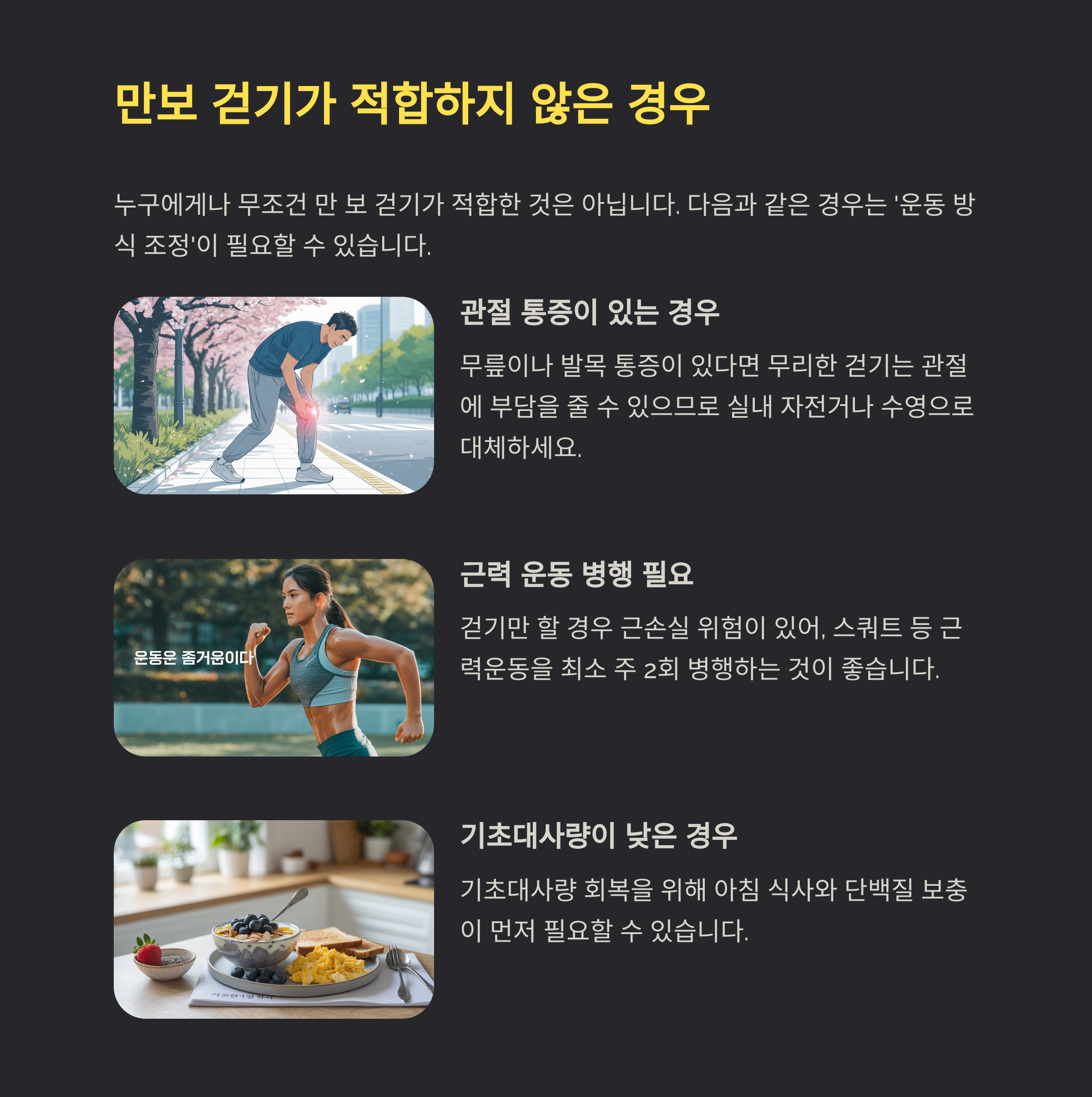 누구에게나 무조건 만 보 걷기가 적합한 것은 아닙니다.