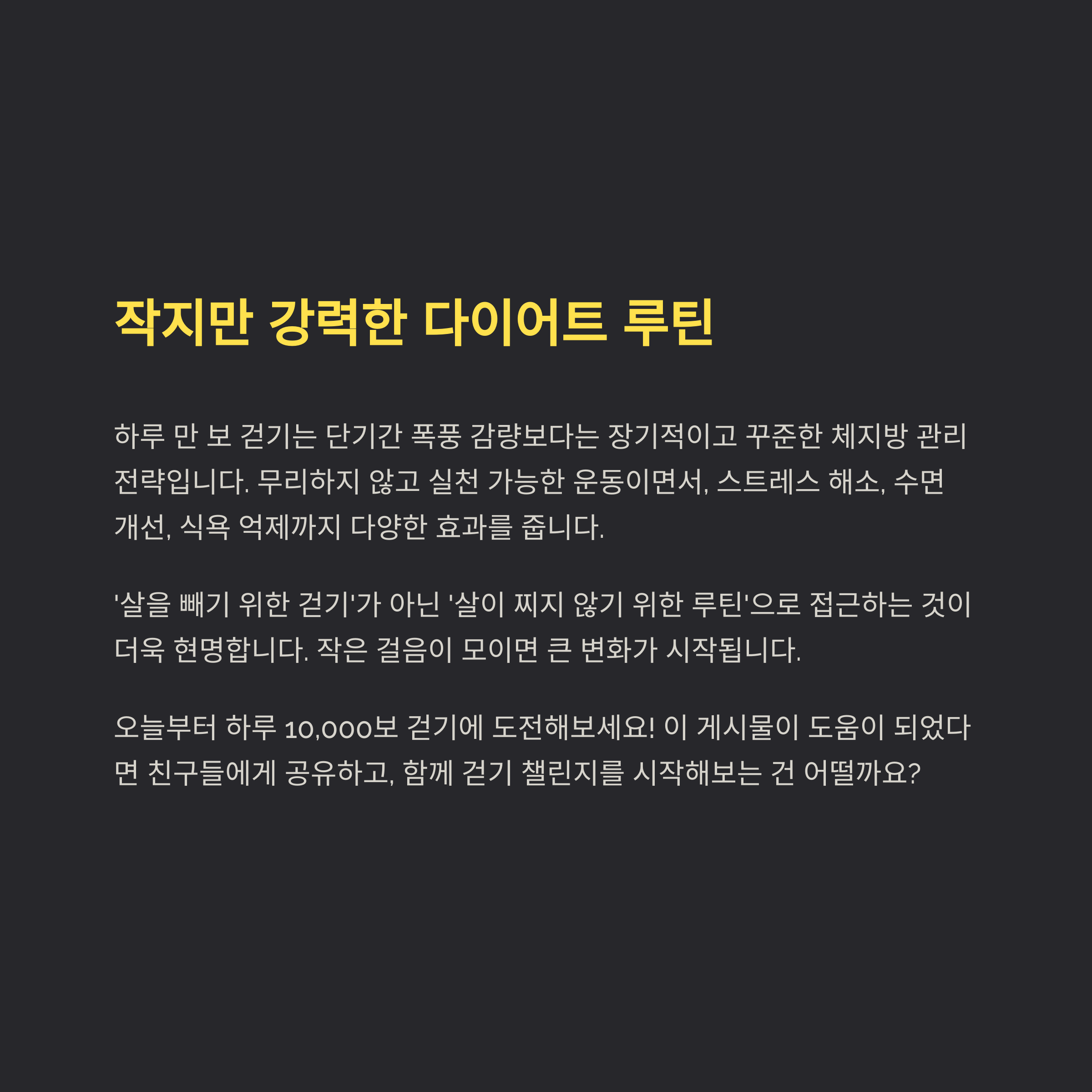 결론 : 하루 10,000보 걷기, '작지만 강력한' 다이어트 루틴입니다