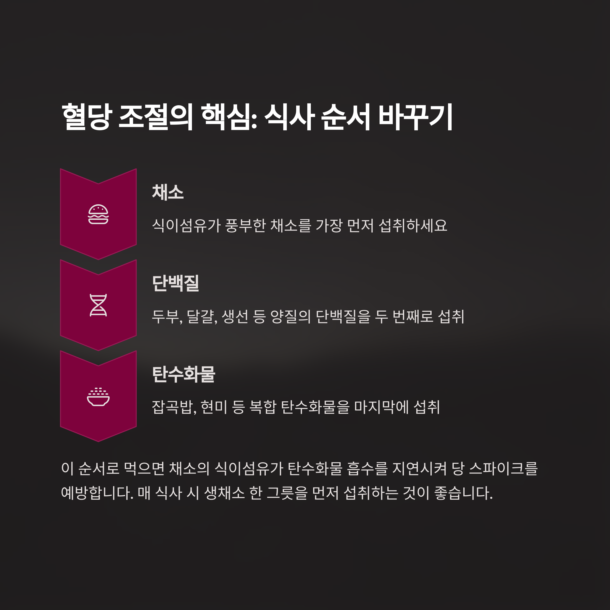 ✅ 1. 식사 순서 바꾸기: 혈당 조절의 핵심